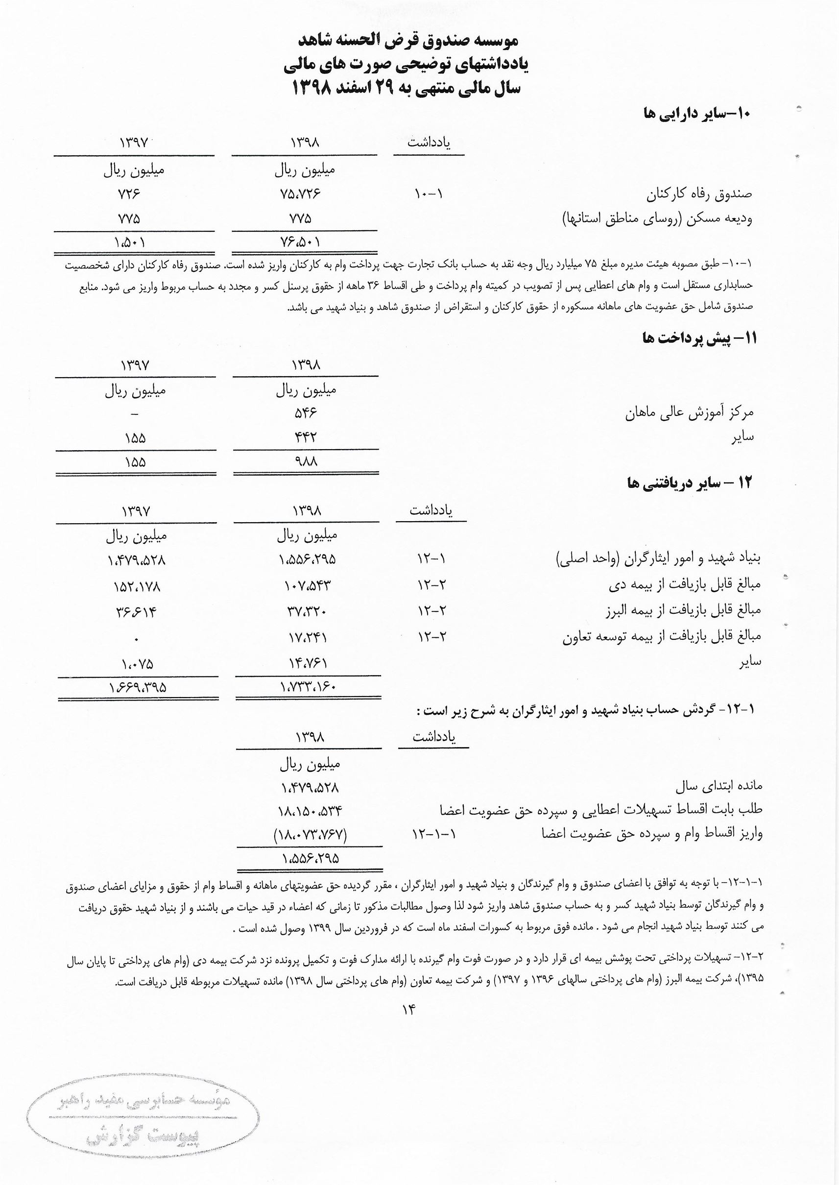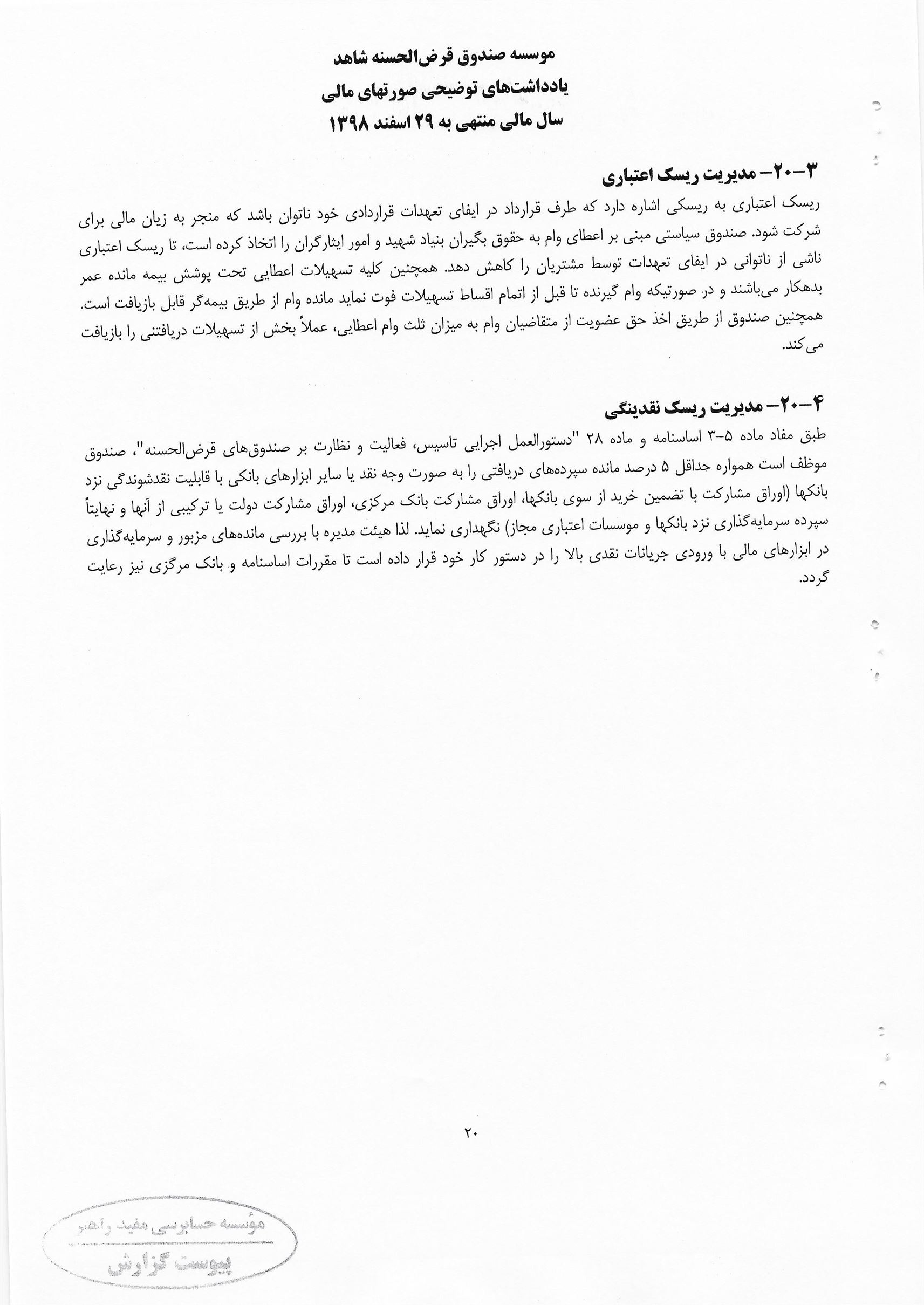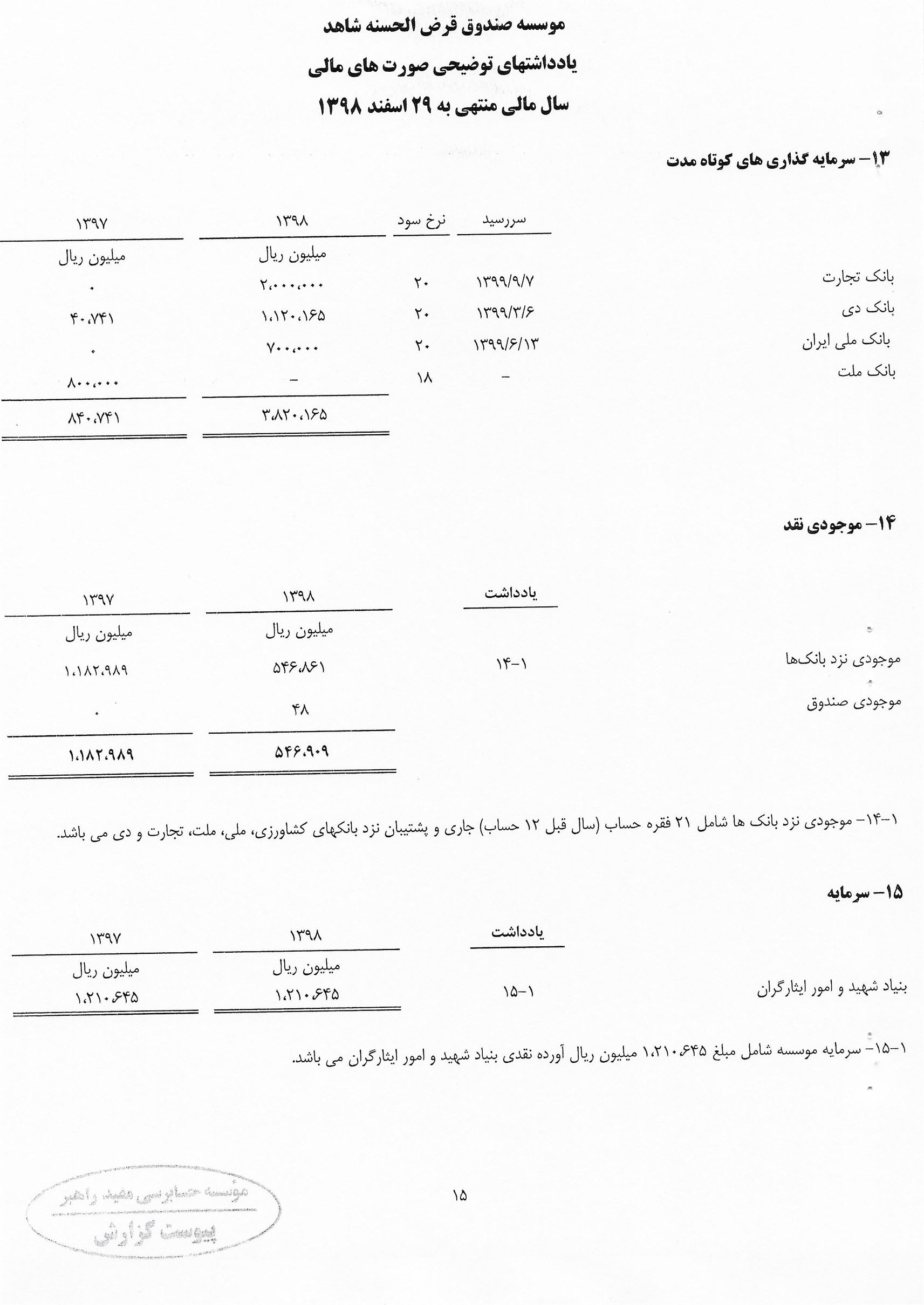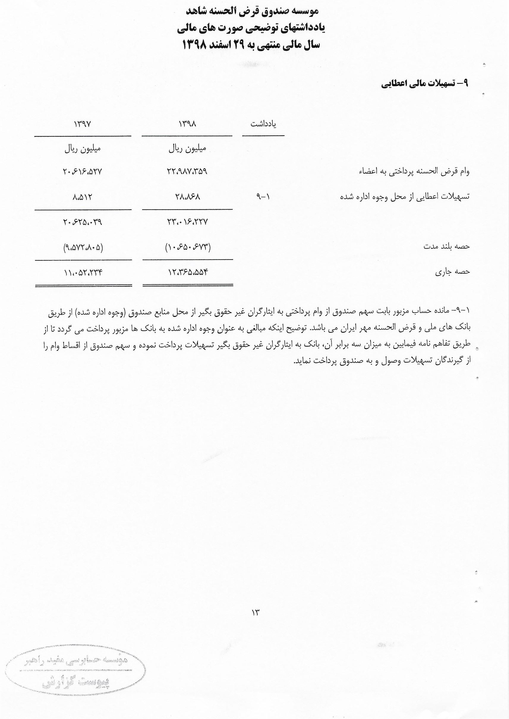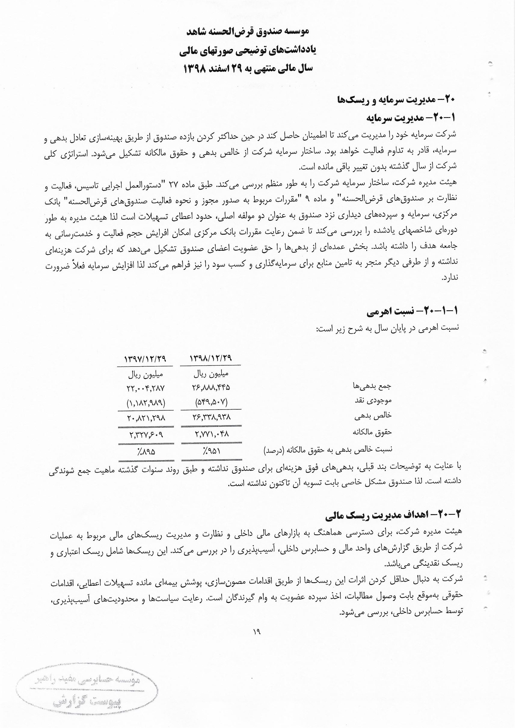 منشور ارزش صندوق قرض الحسنه شاهد