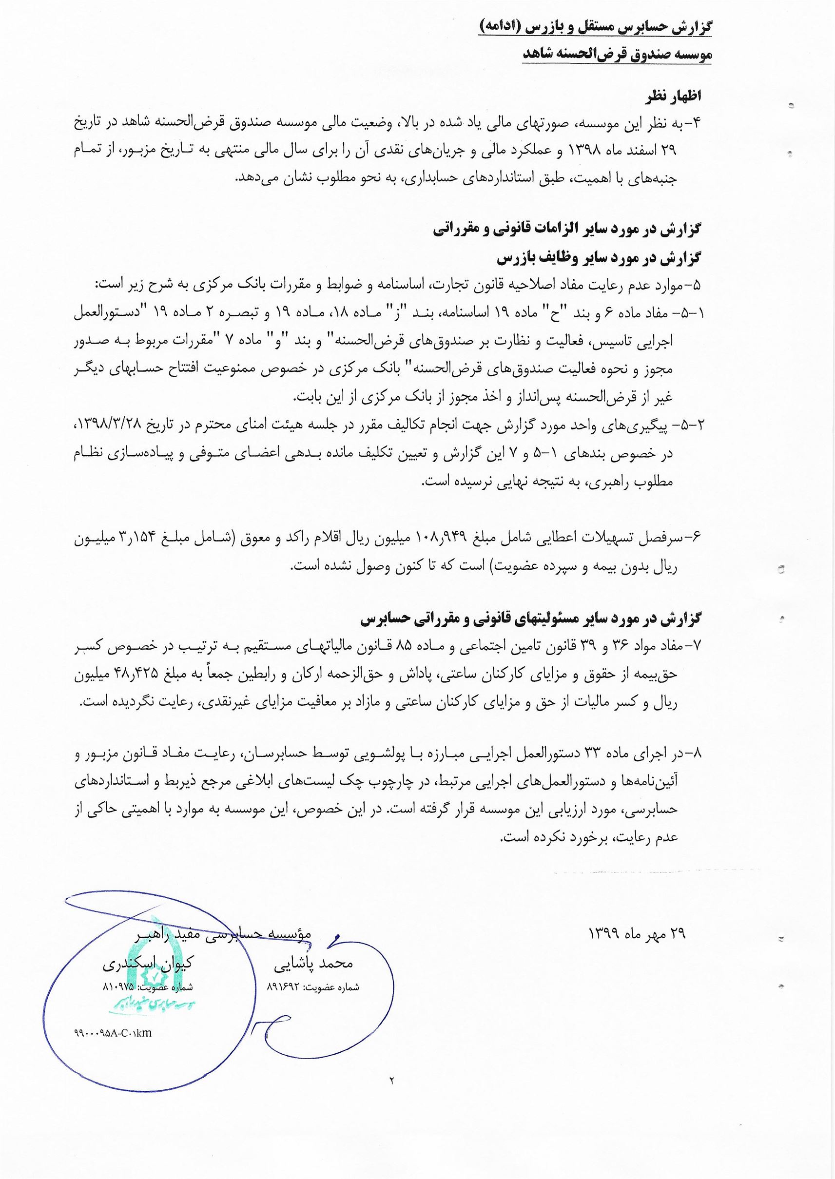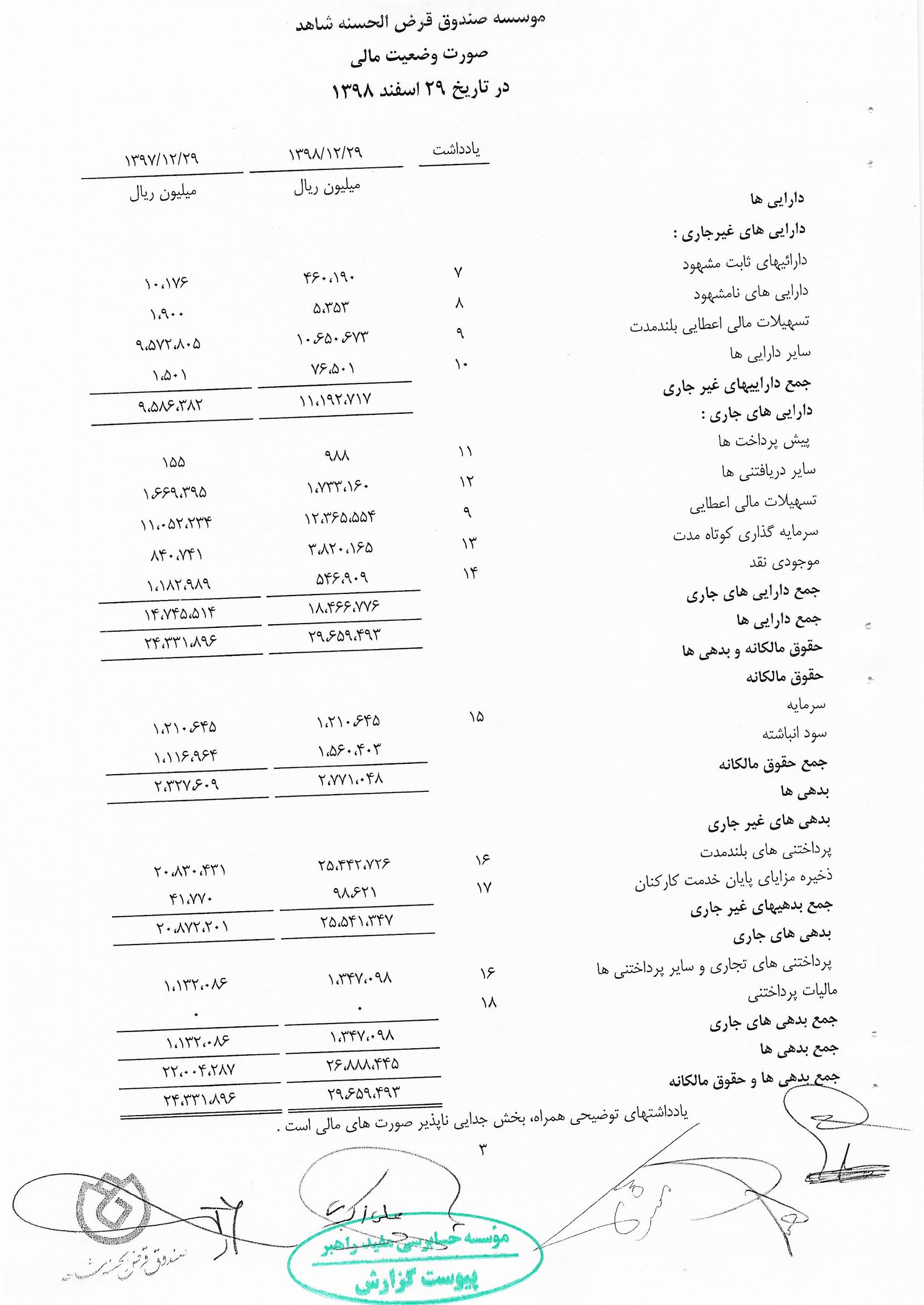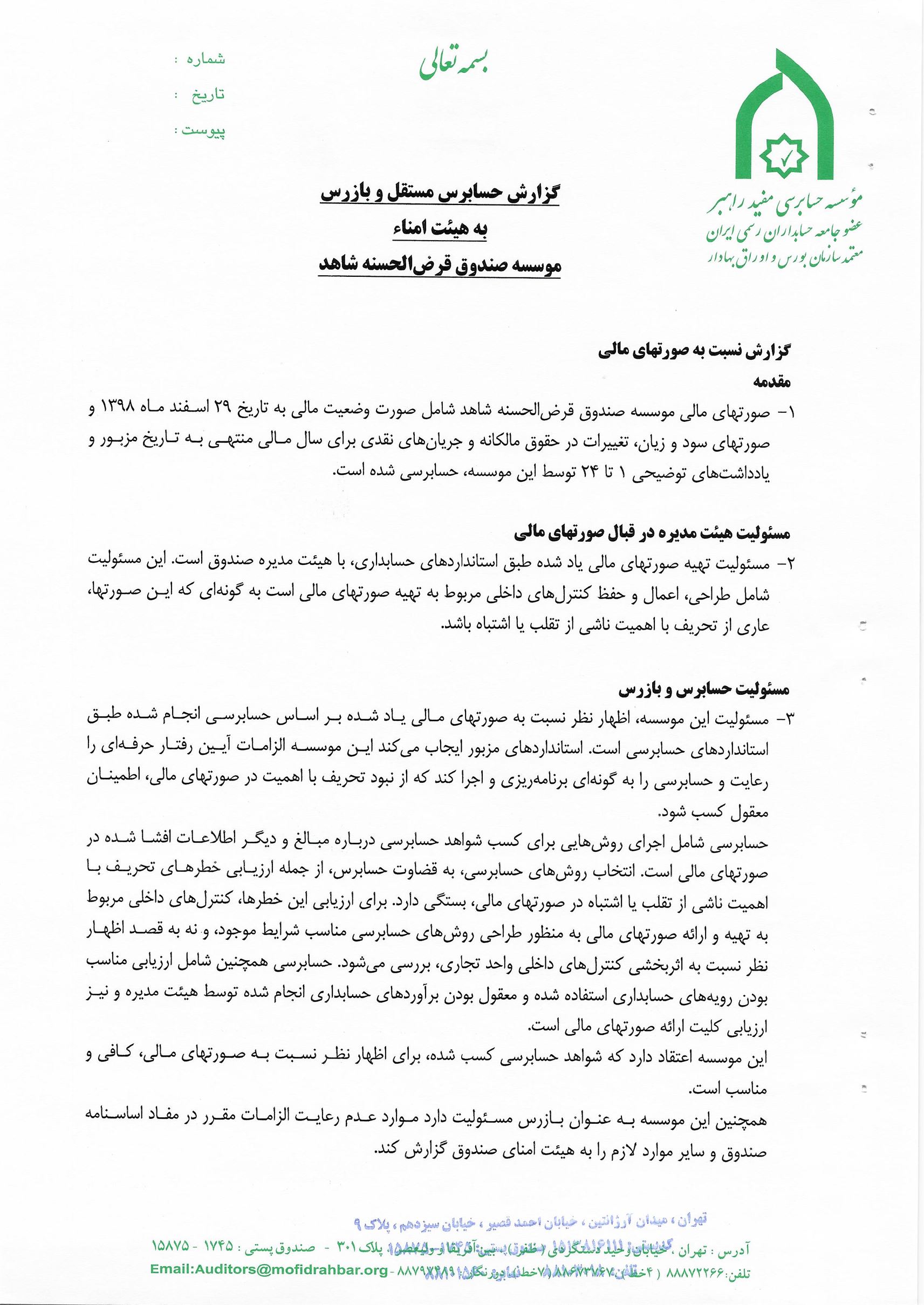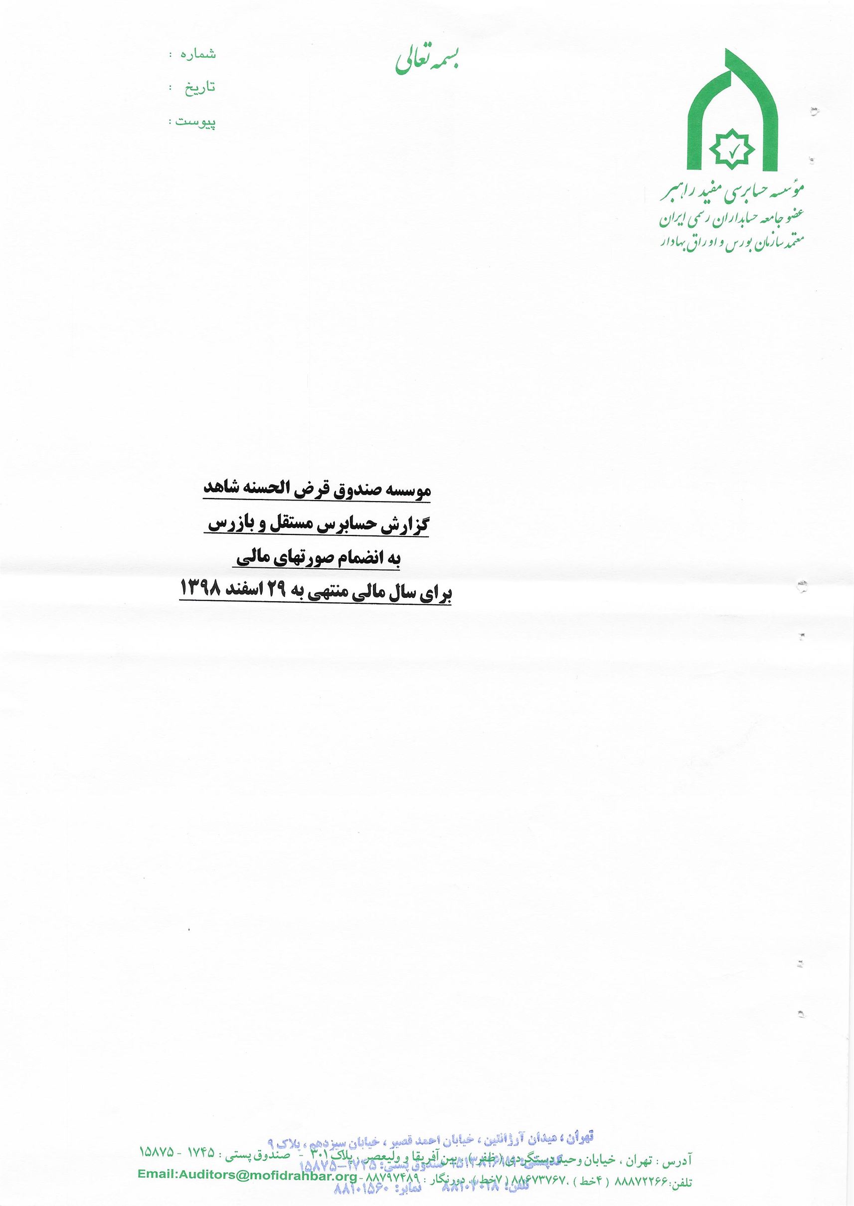 گزارش حسابرس مستقل و بازرس به انضمام صورتهای مالی برای سال مالی منتهی به 29 اسفند 1398