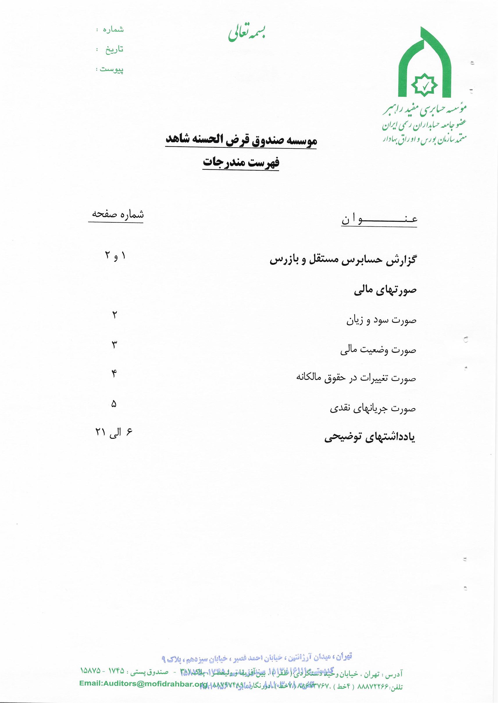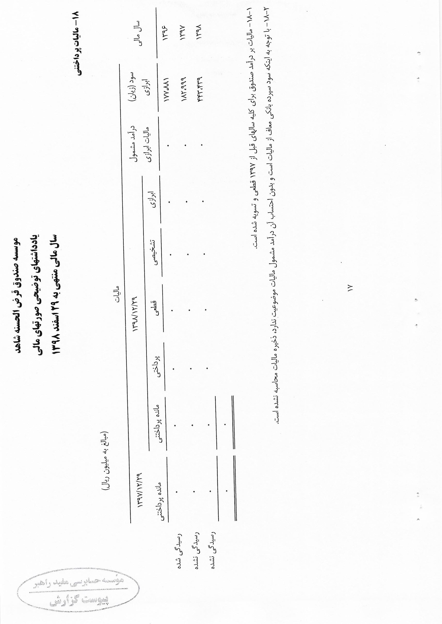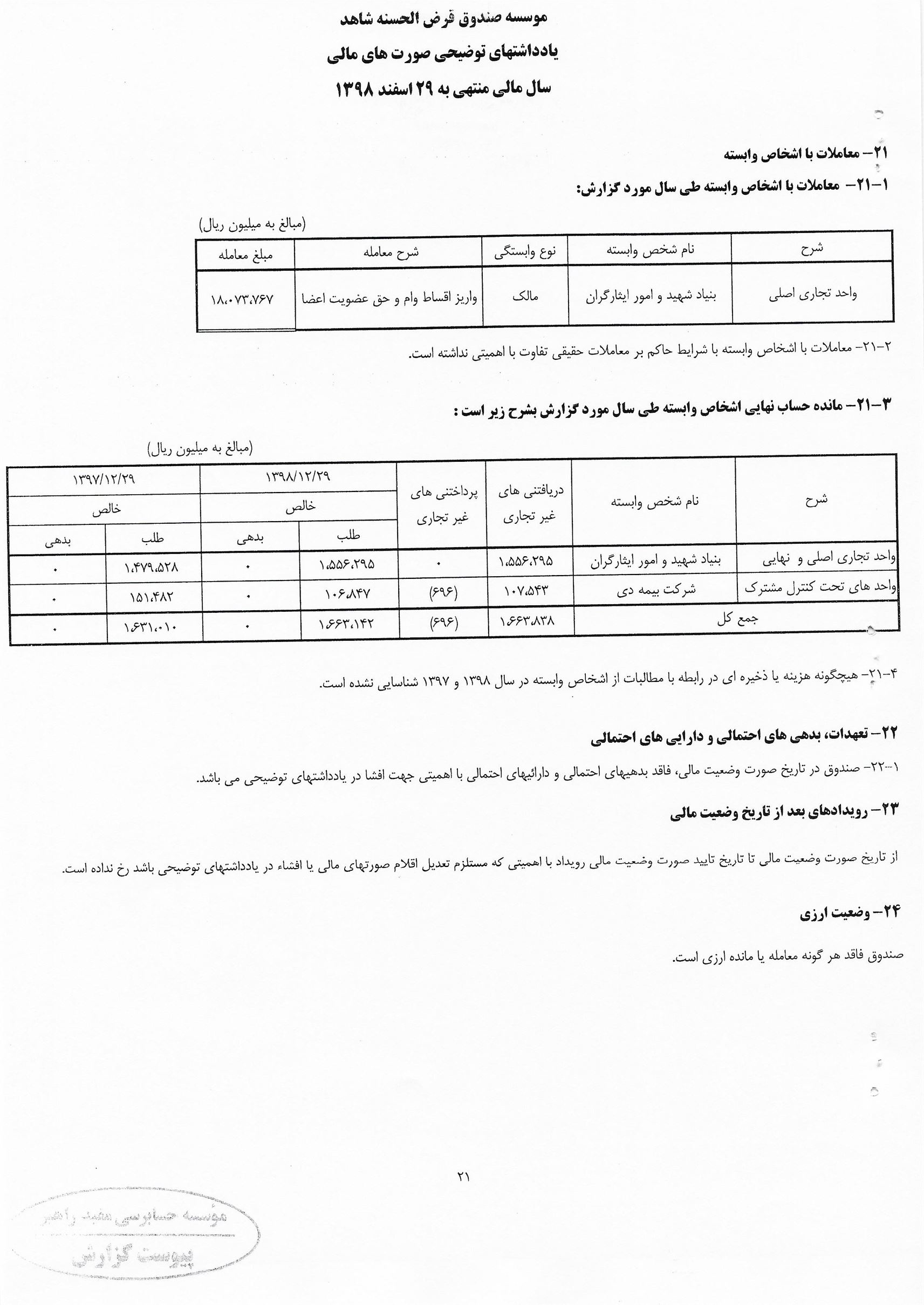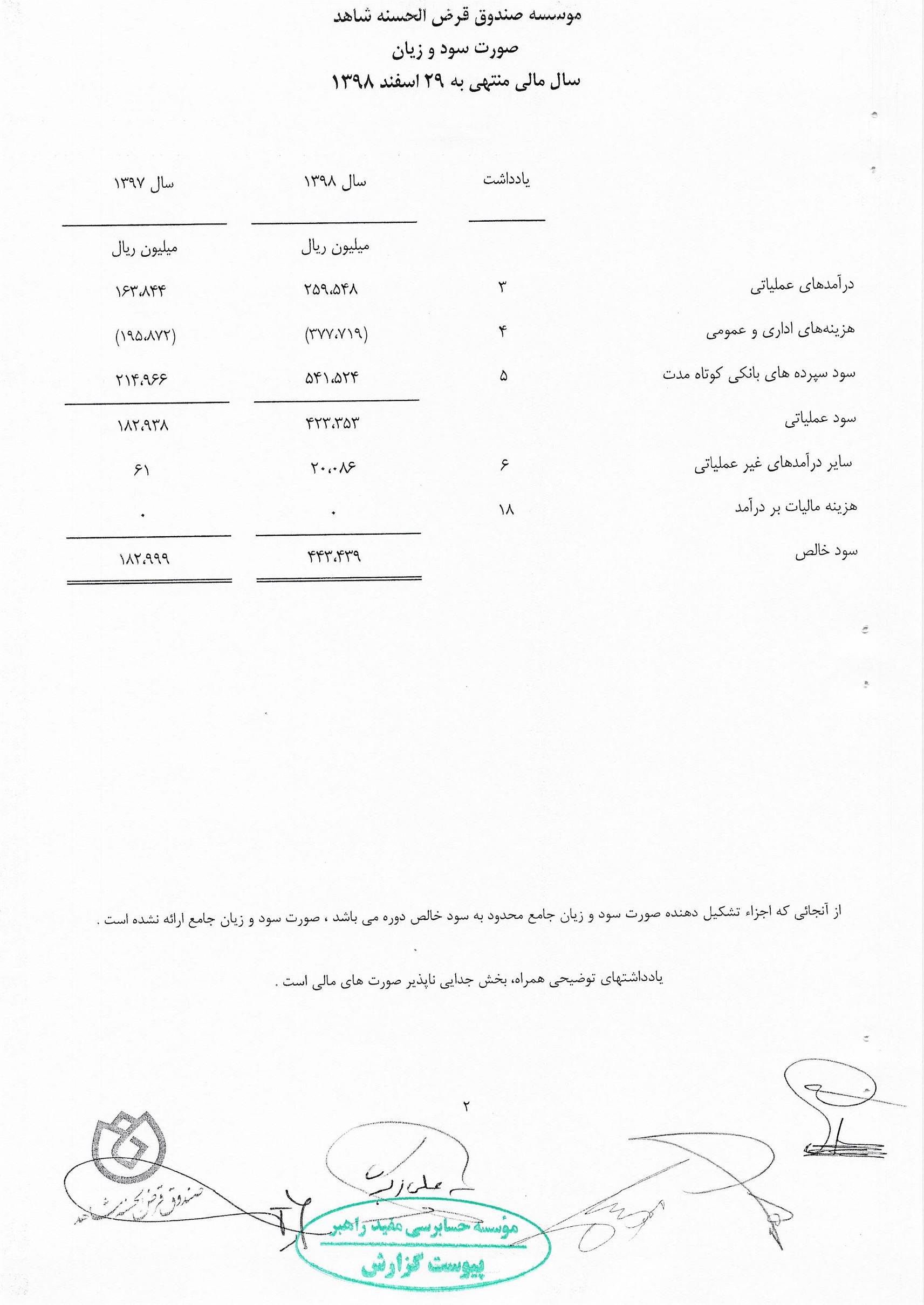 گزارش حسابرس مستقل و بازرس به انضمام صورتهای مالی برای سال مالی منتهی به 29 اسفند 1398