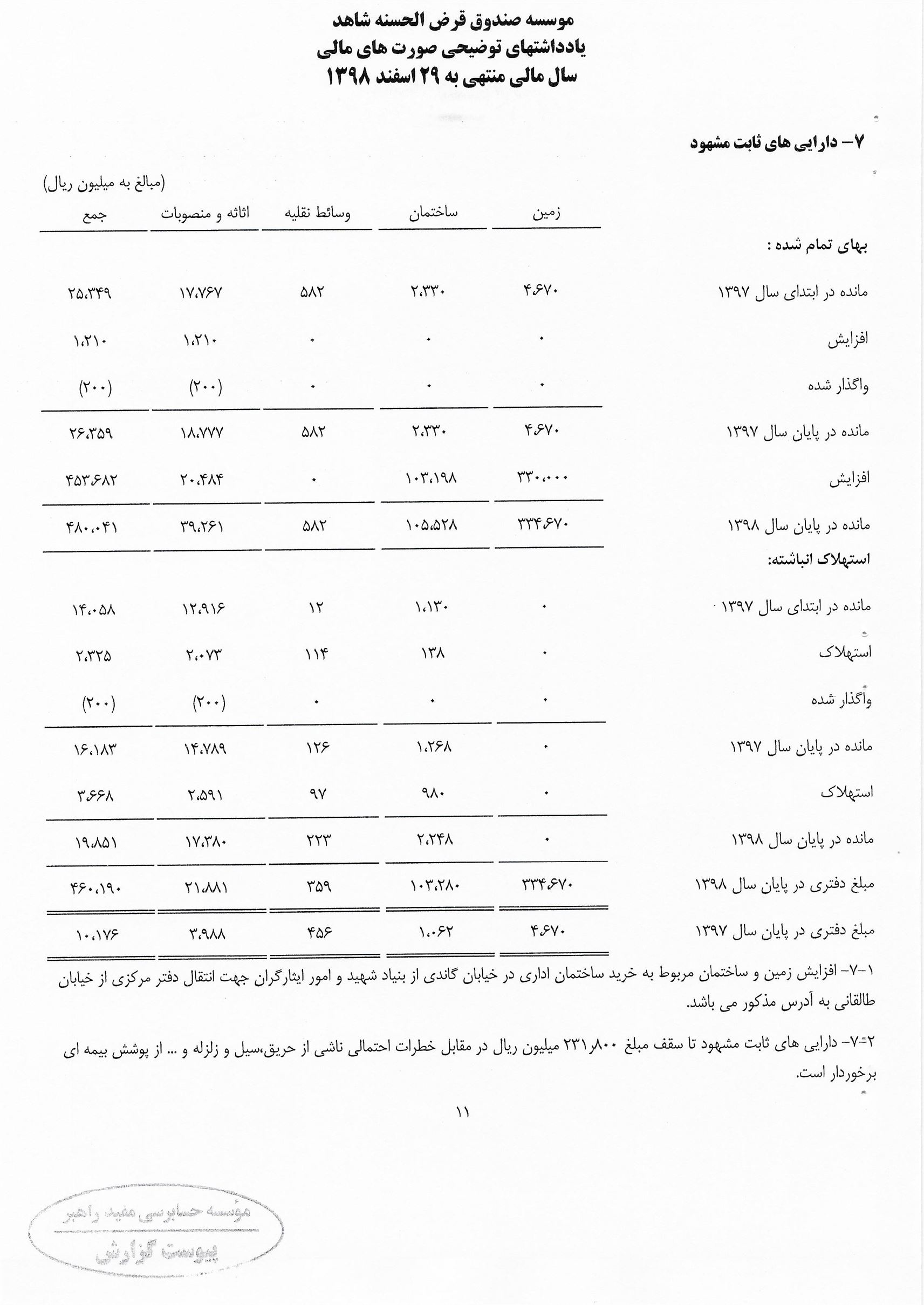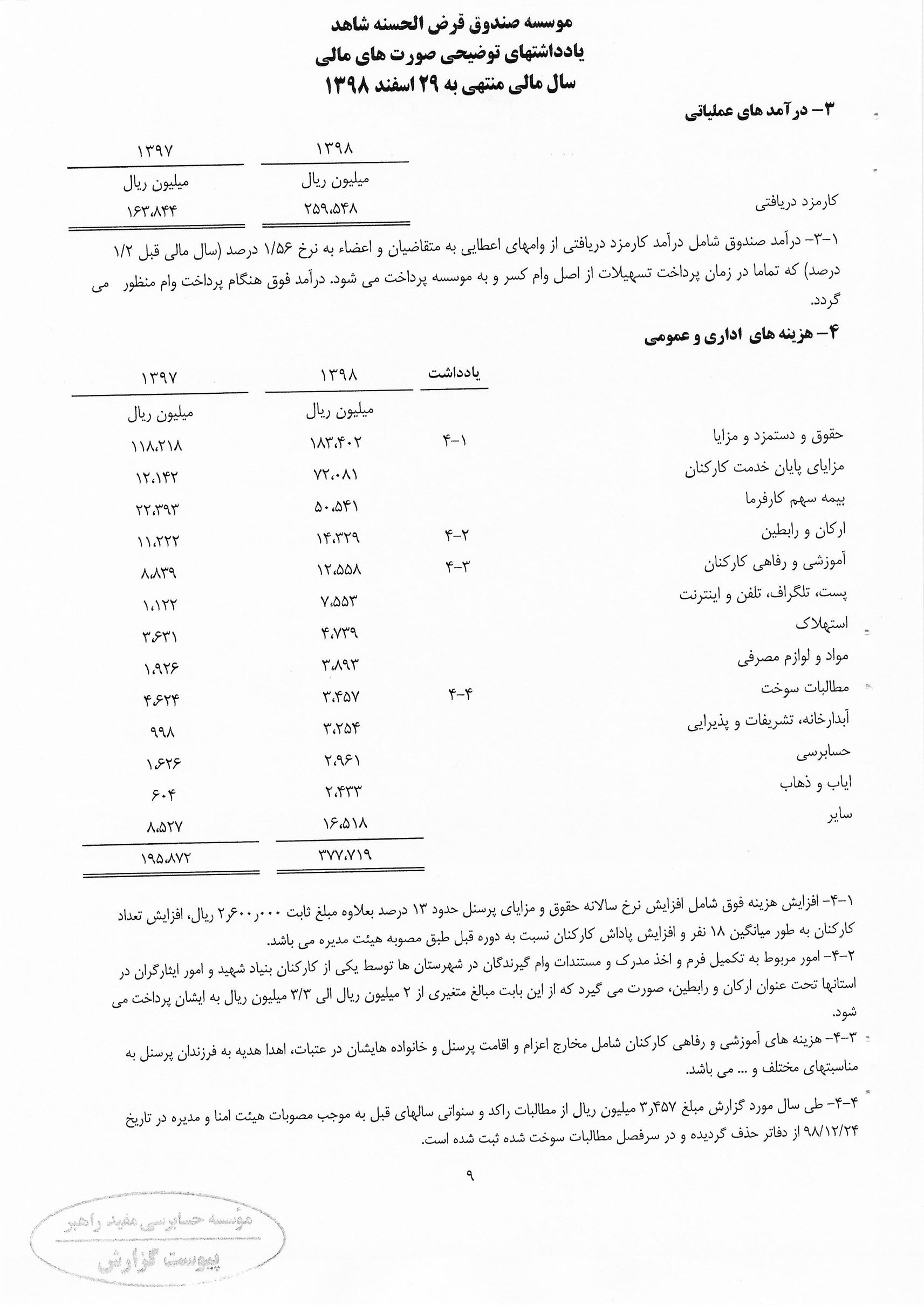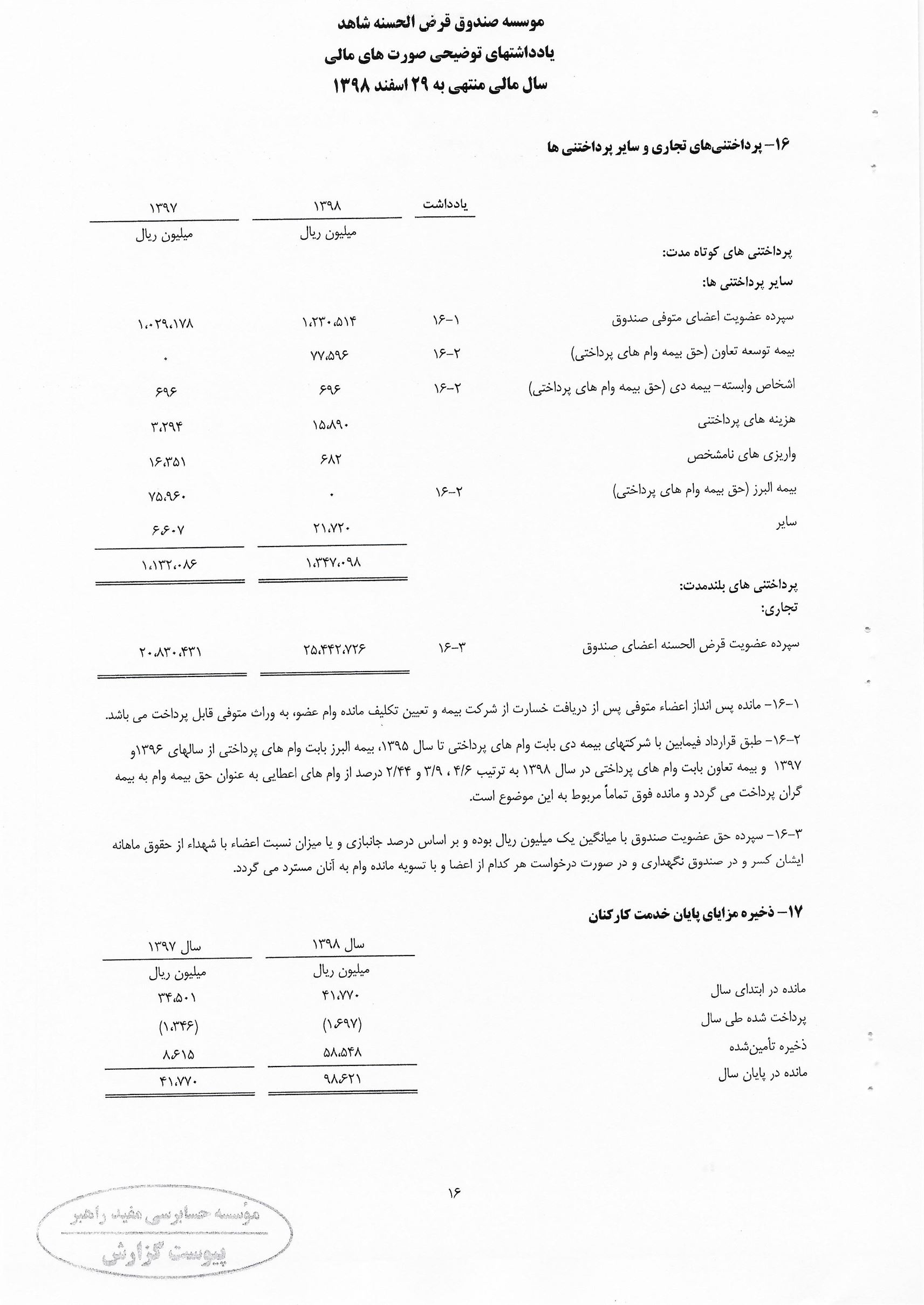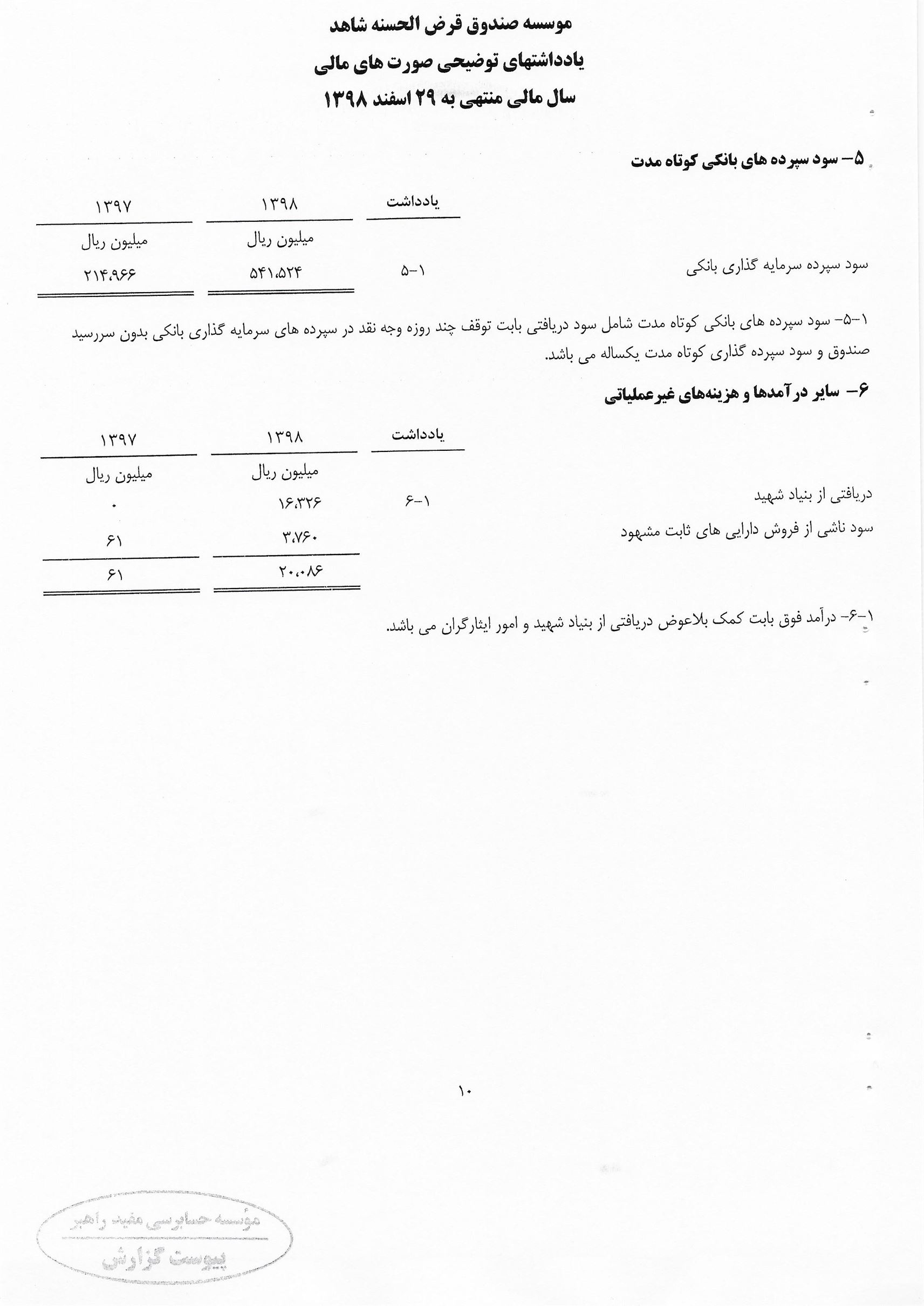 گزارش حسابرس مستقل و بازرس به انضمام صورتهای مالی برای سال مالی منتهی به 29 اسفند 1398