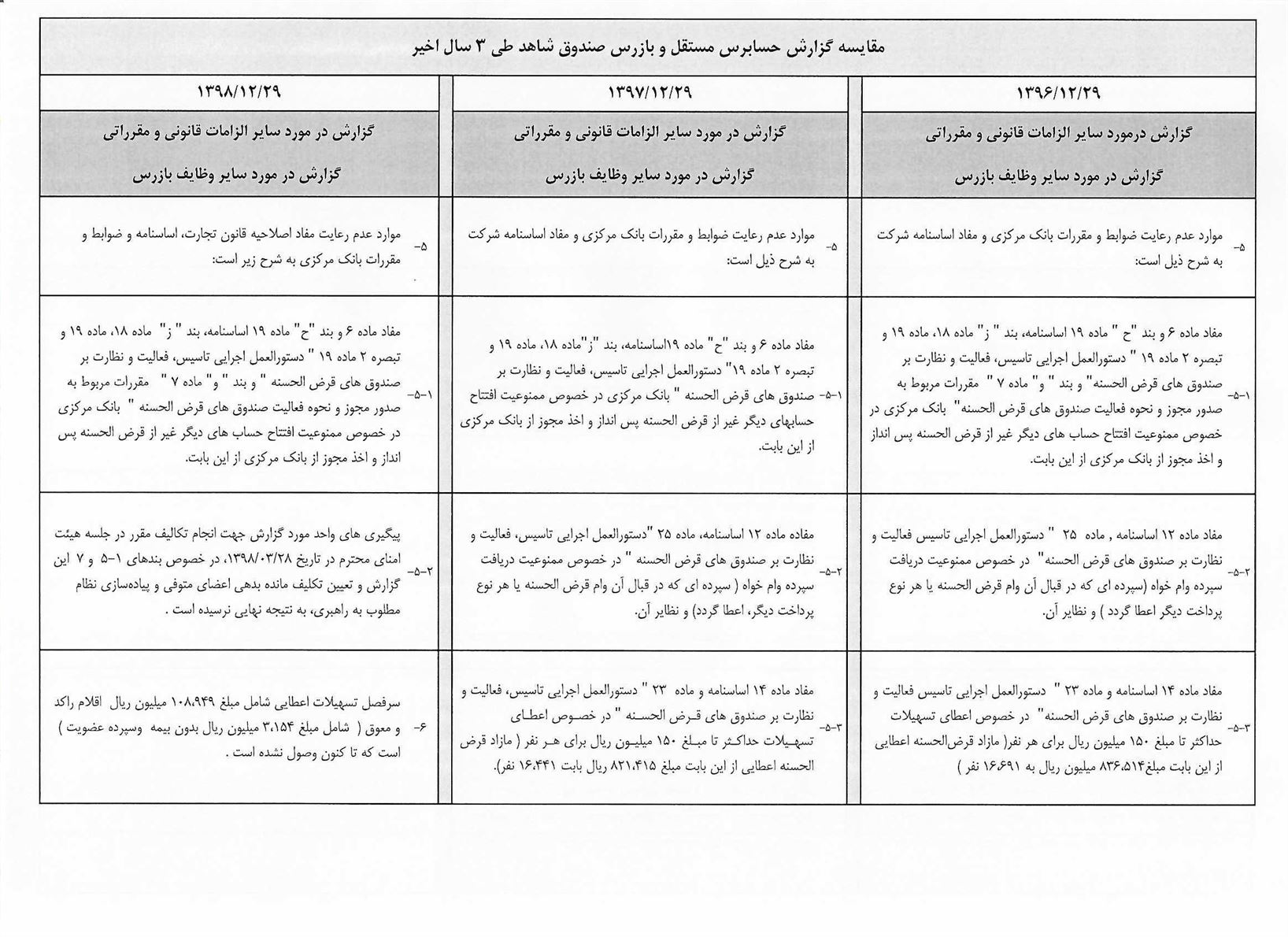 مقایسه گزارش حسابرس مستقل و بازرس صندوق شاهد طی 3 سال منتهی به 29 اسفند 1398