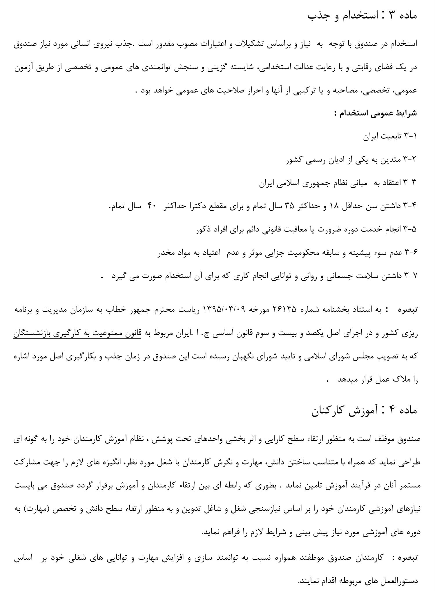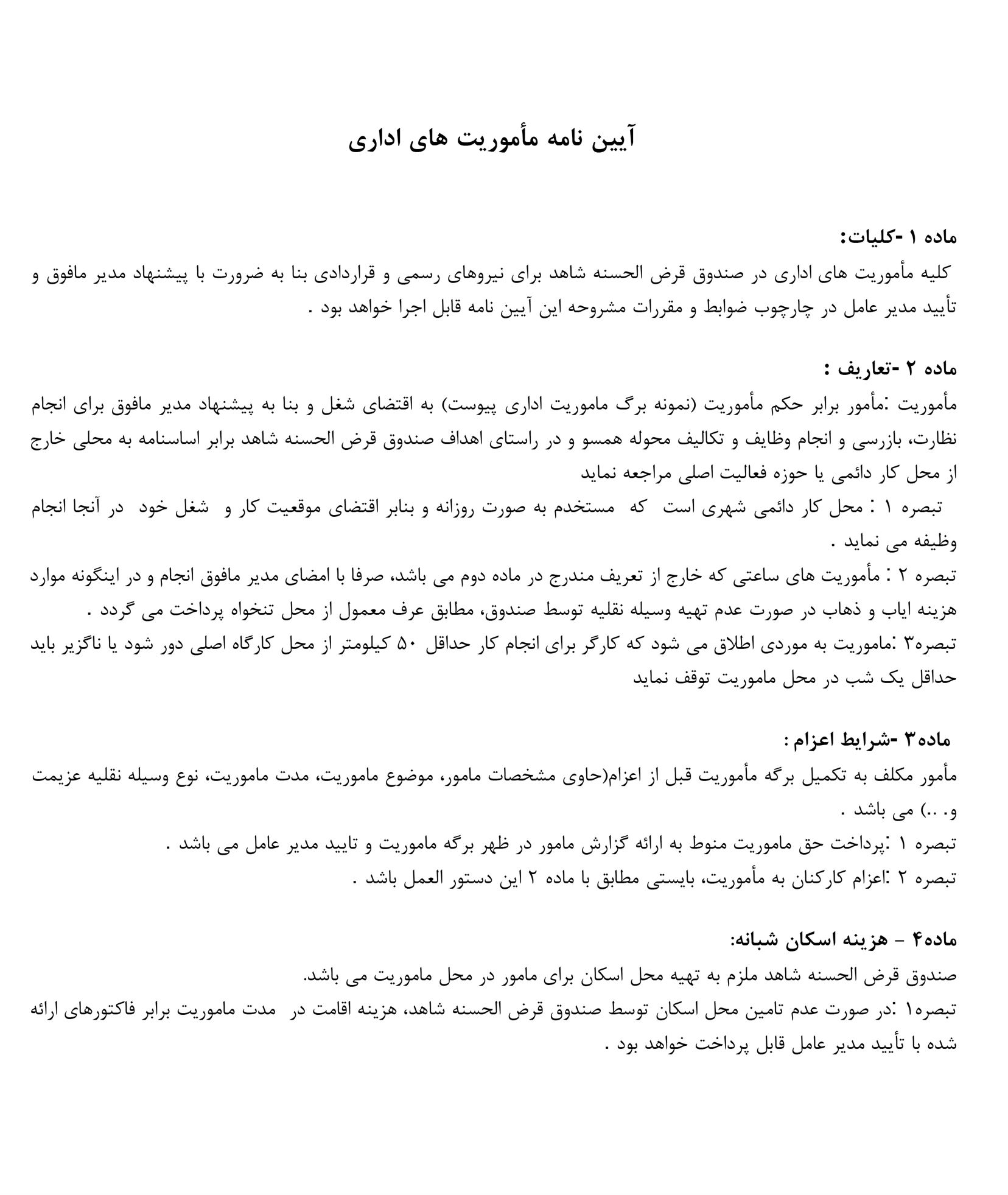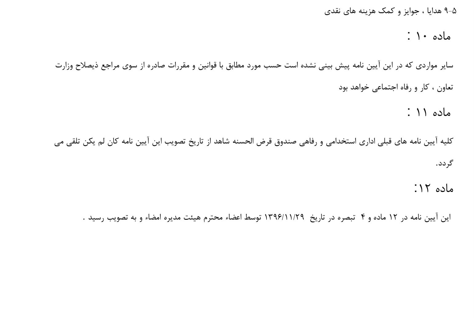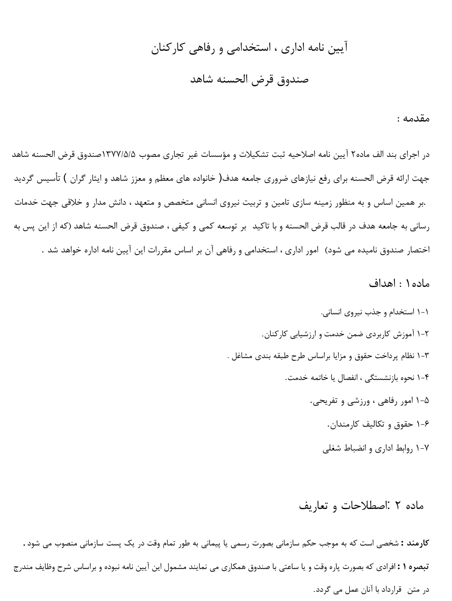 آیین نامه اداری ، استخدامی و رفاهی کارکنان صندوق قرض الحسنه شاهد