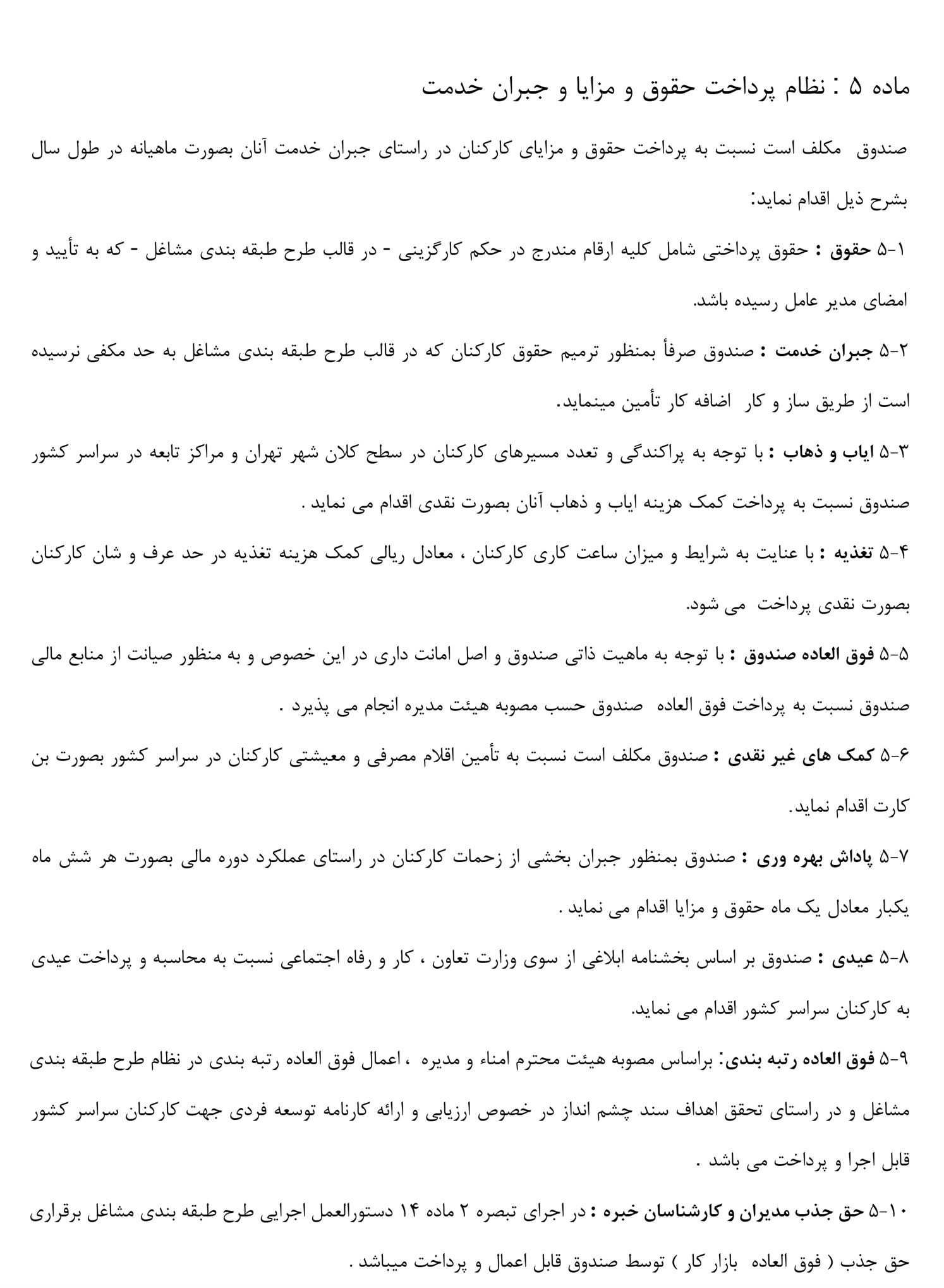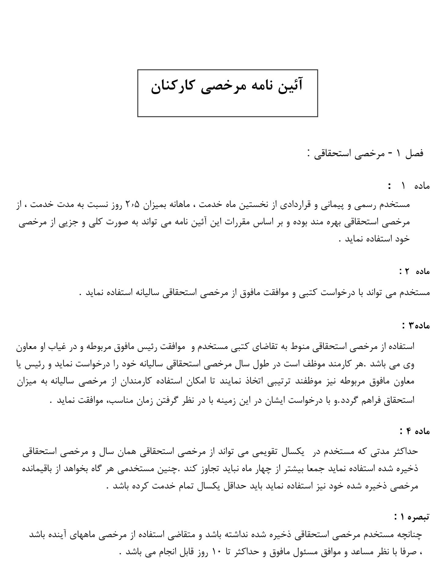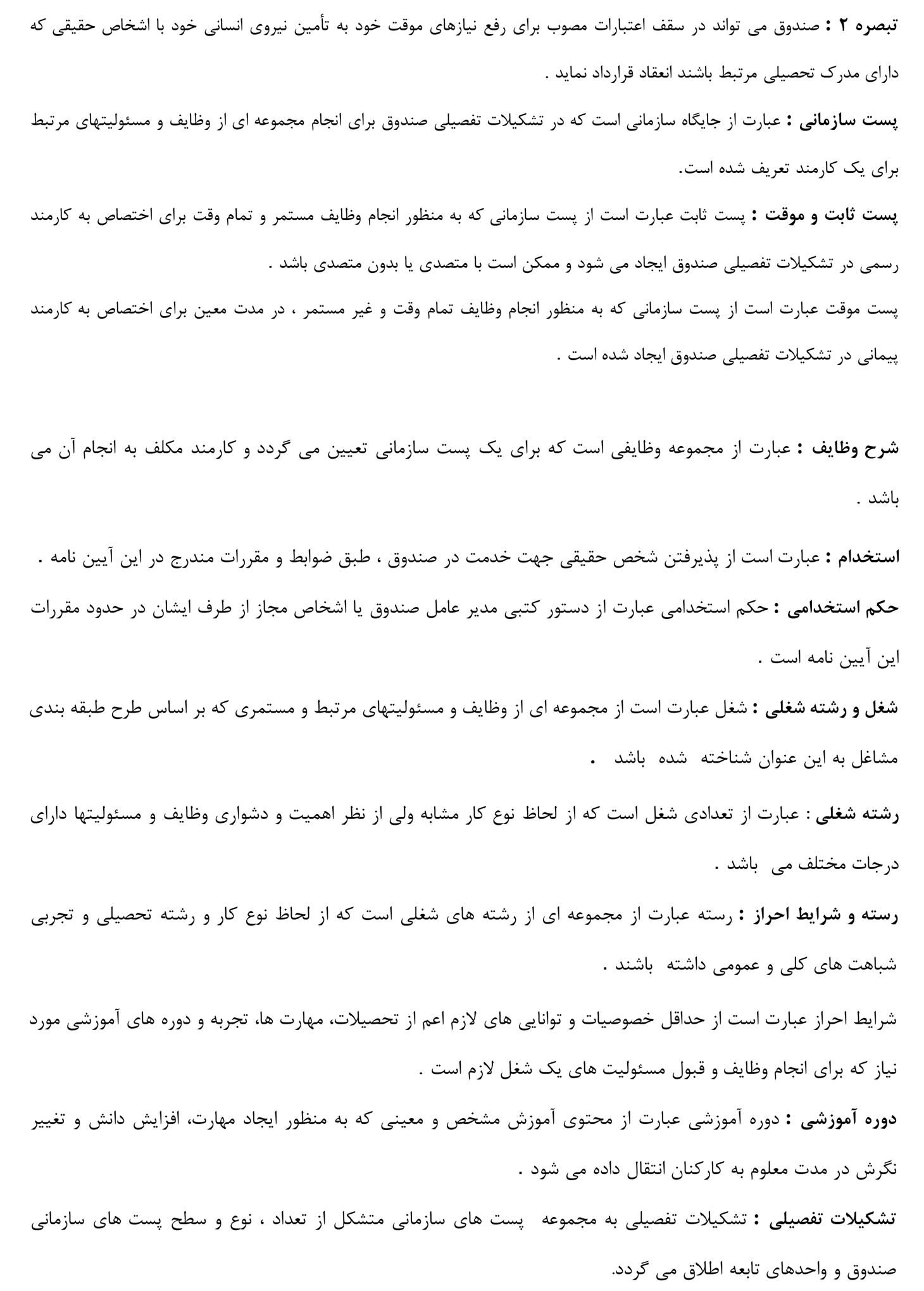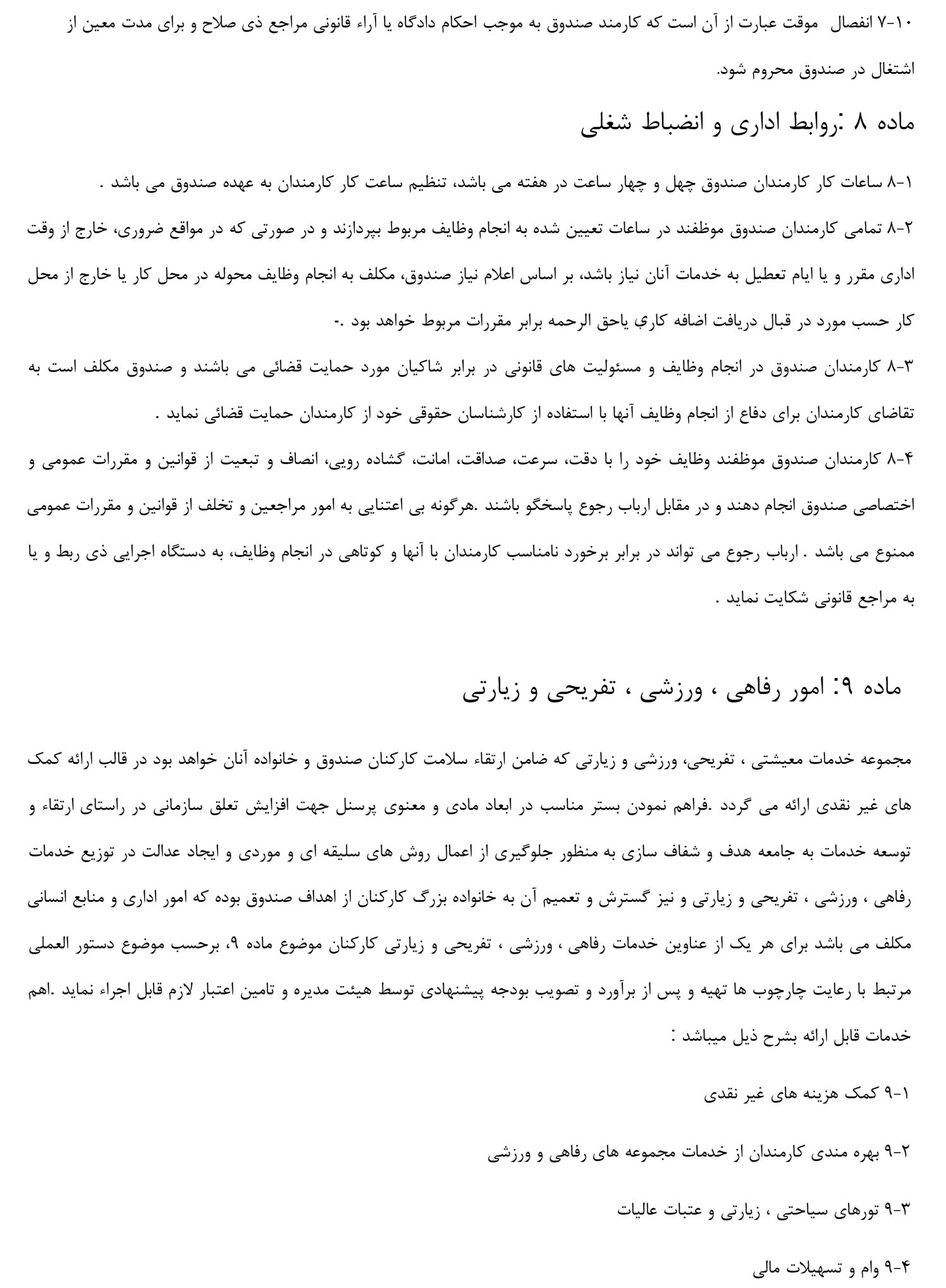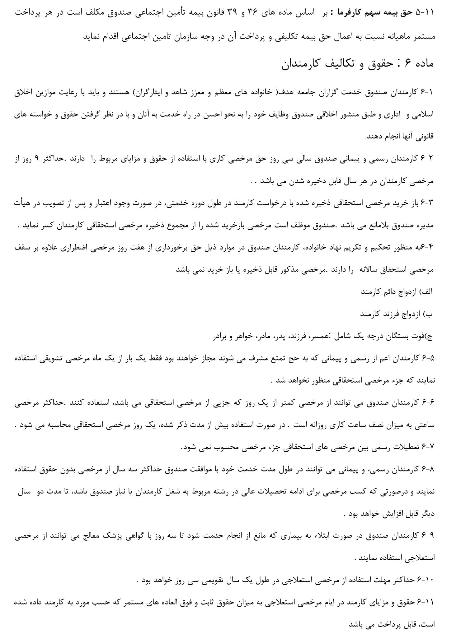 آیین نامه اداری ، استخدامی و رفاهی کارکنان صندوق قرض الحسنه شاهد