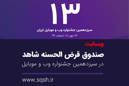 به گزارش روابط عمومی صندوق قرض الحسنه شاهد، سیزدهمین جشنواره ملی وب و موبایل ایران از 13 مهر 99 با رای گیری از مخاطبان وب سایت ها و اپلیکیشن های موبایلی شرکت کننده در این جشنواره رسما کار خود را آغاز کرد.