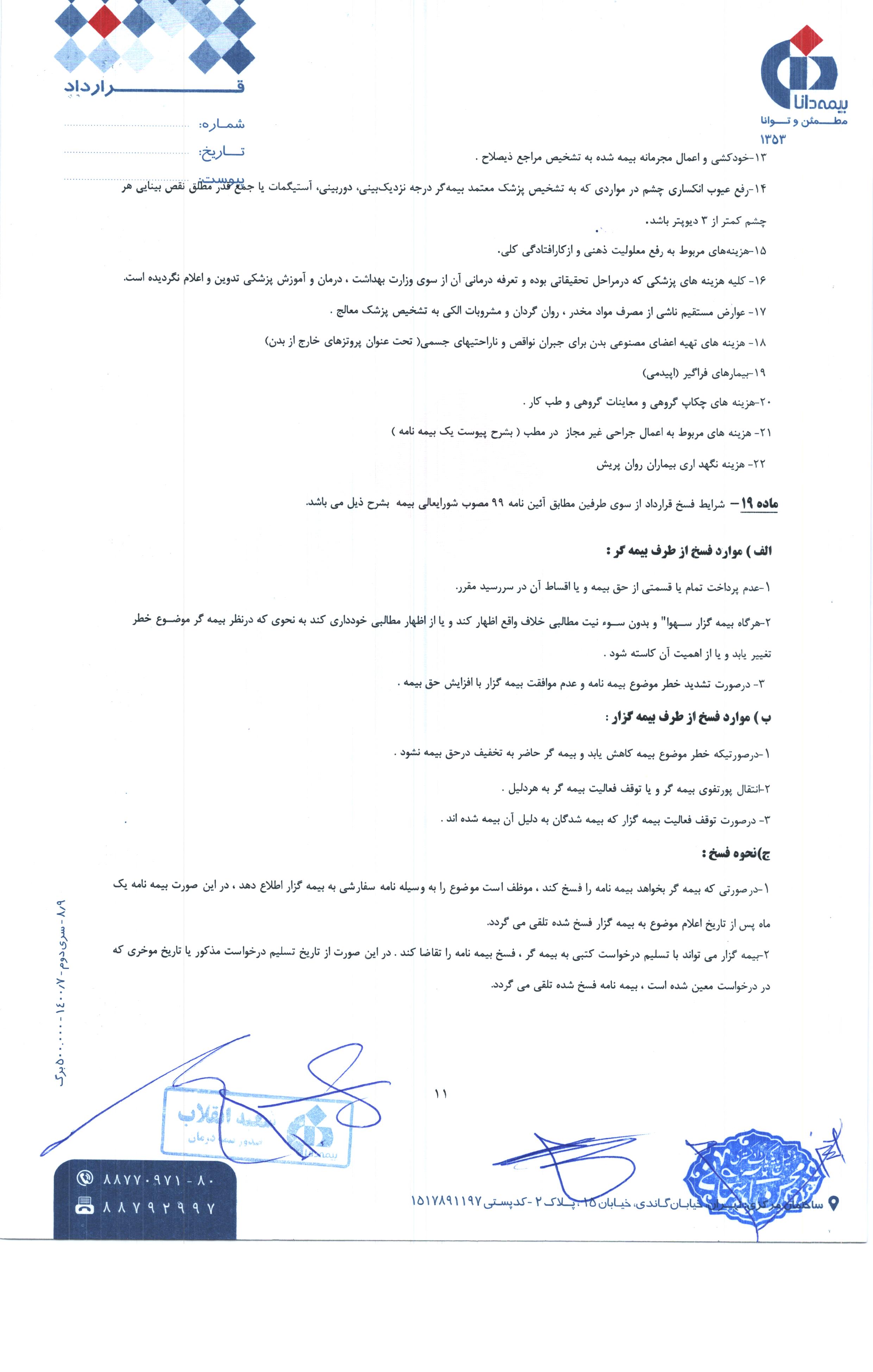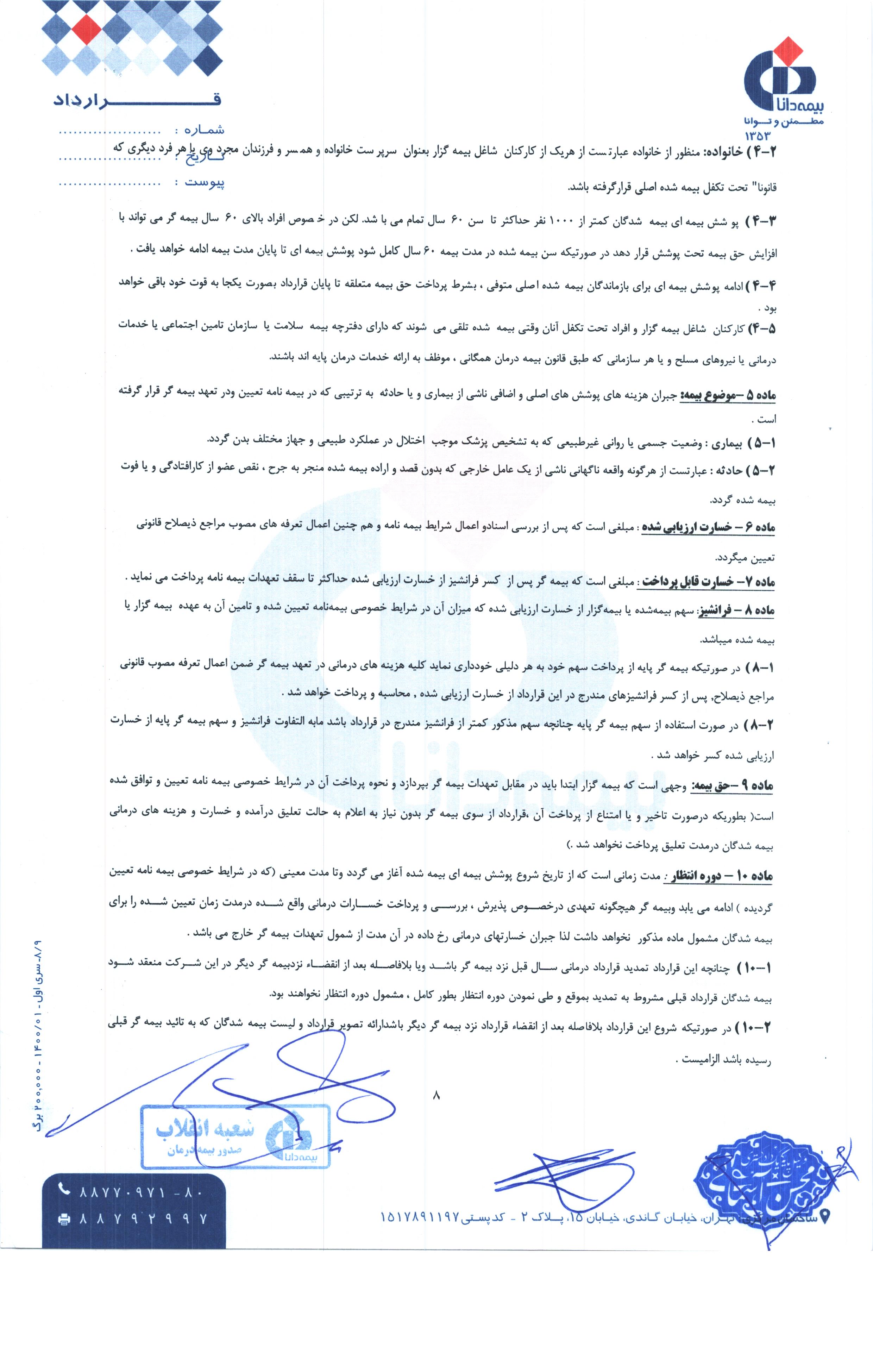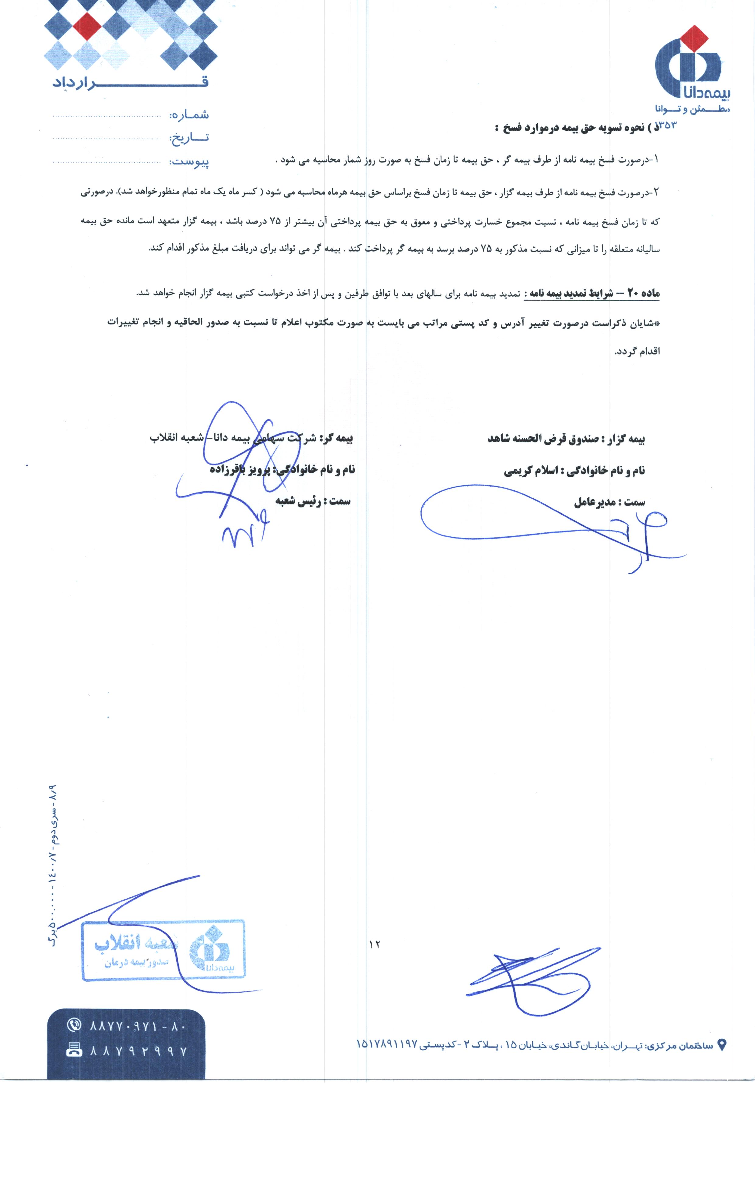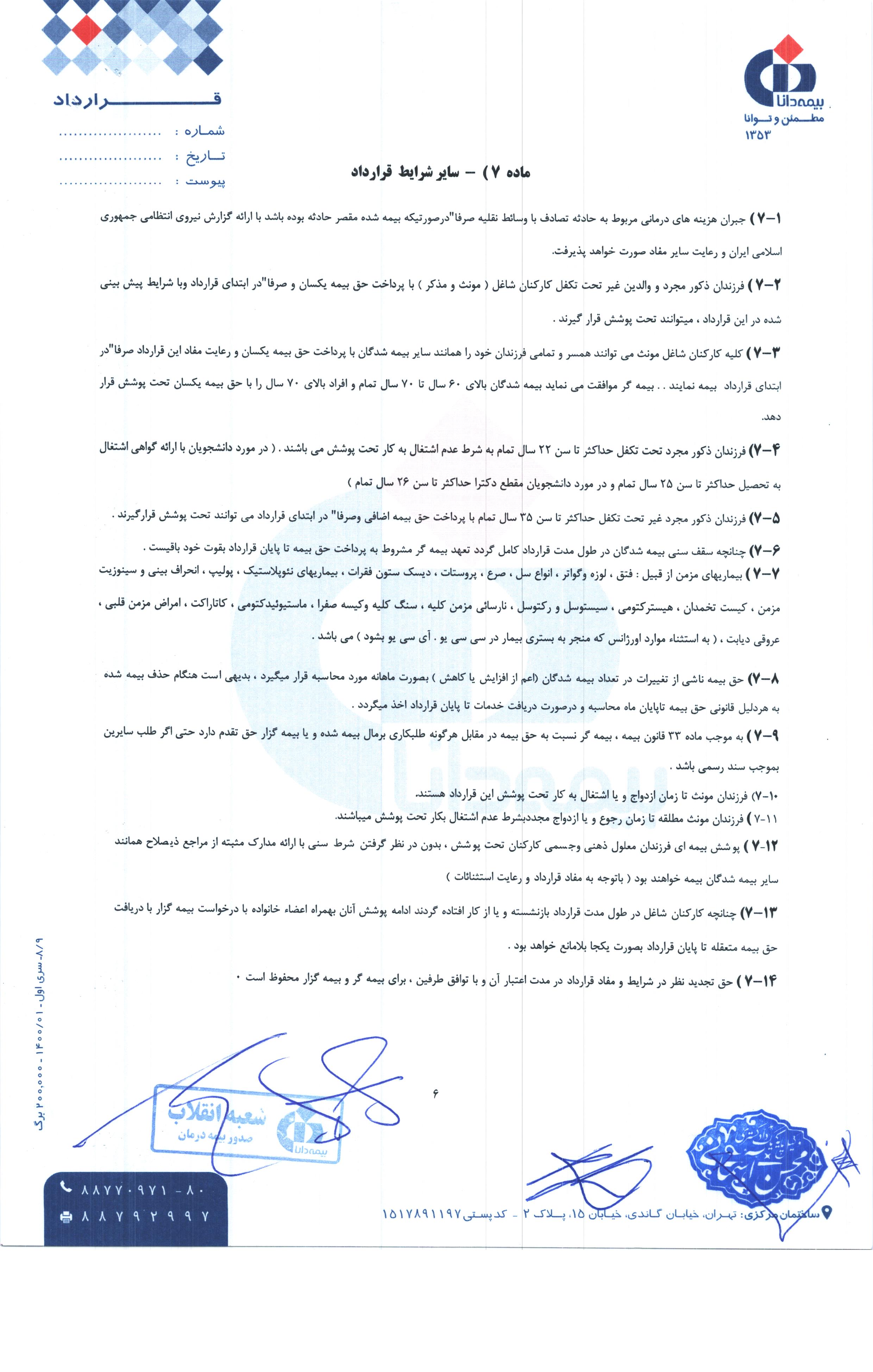 قرارداد بیمه تکمیلی 1400 کارکنان خدوم صندوق قرض الحسنه شاهد