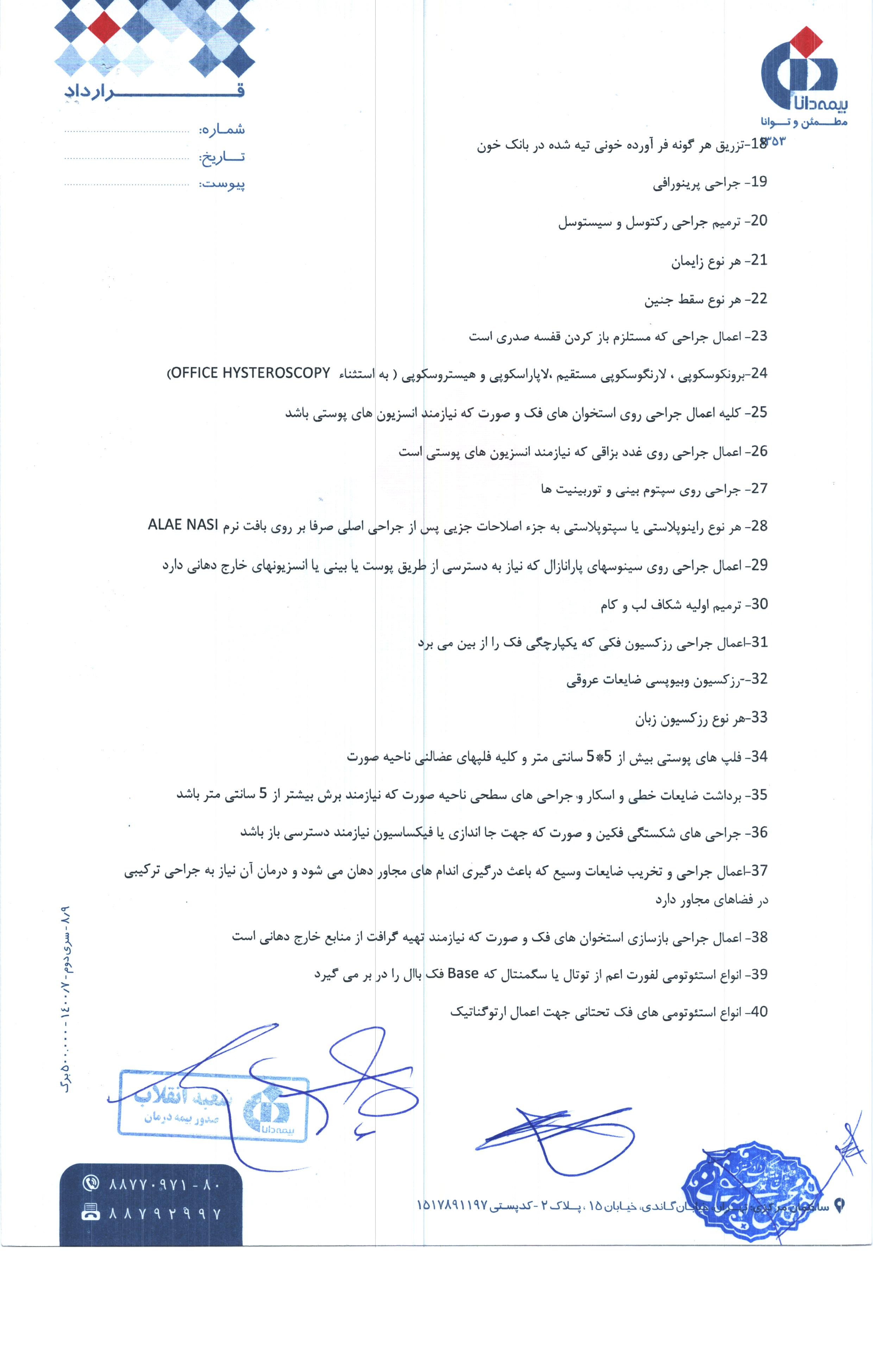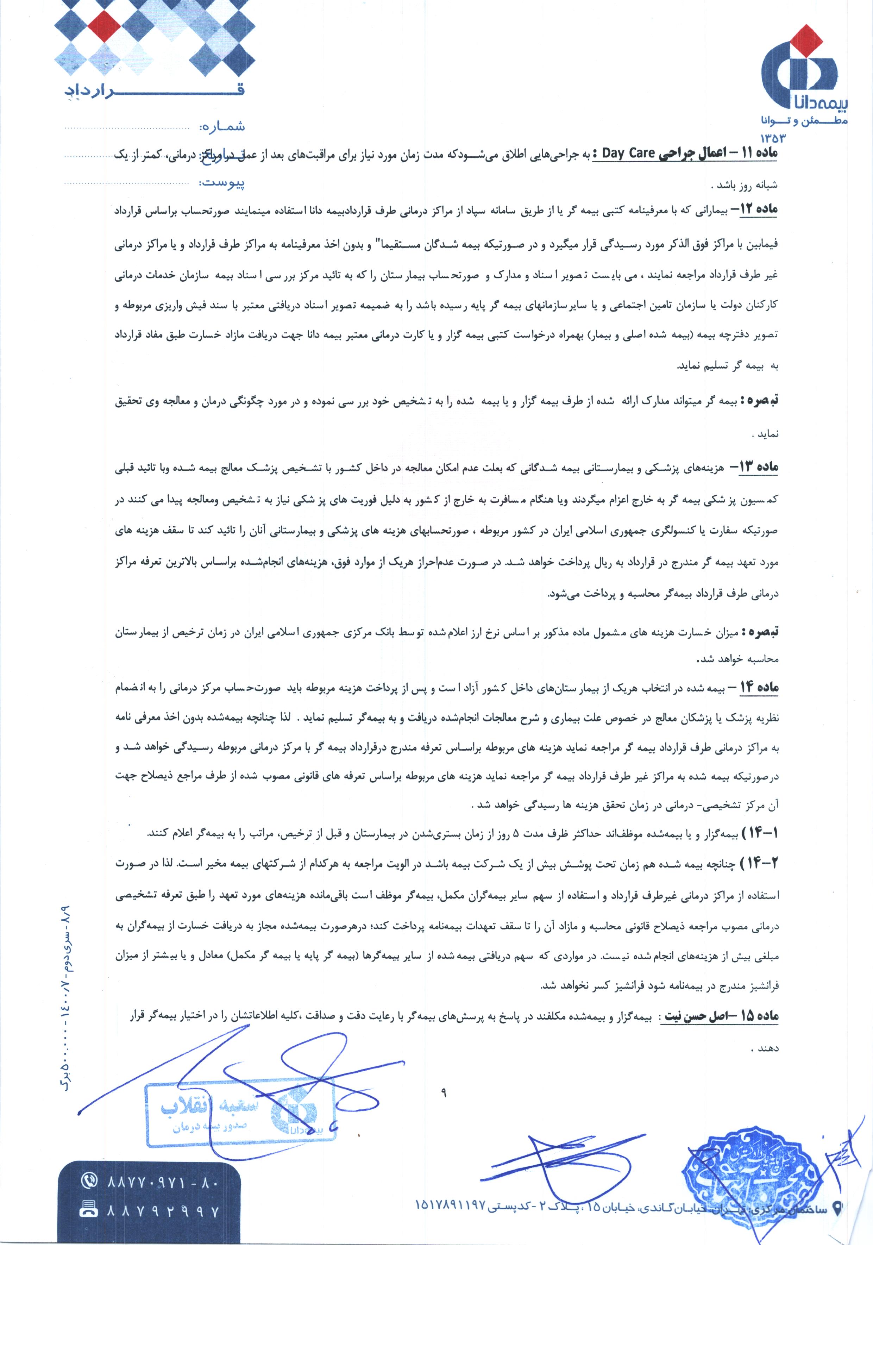 قرارداد و سقف تعهدات بیمه تکمیلی دانا 1401 صندوق قرض الحسنه شاهد