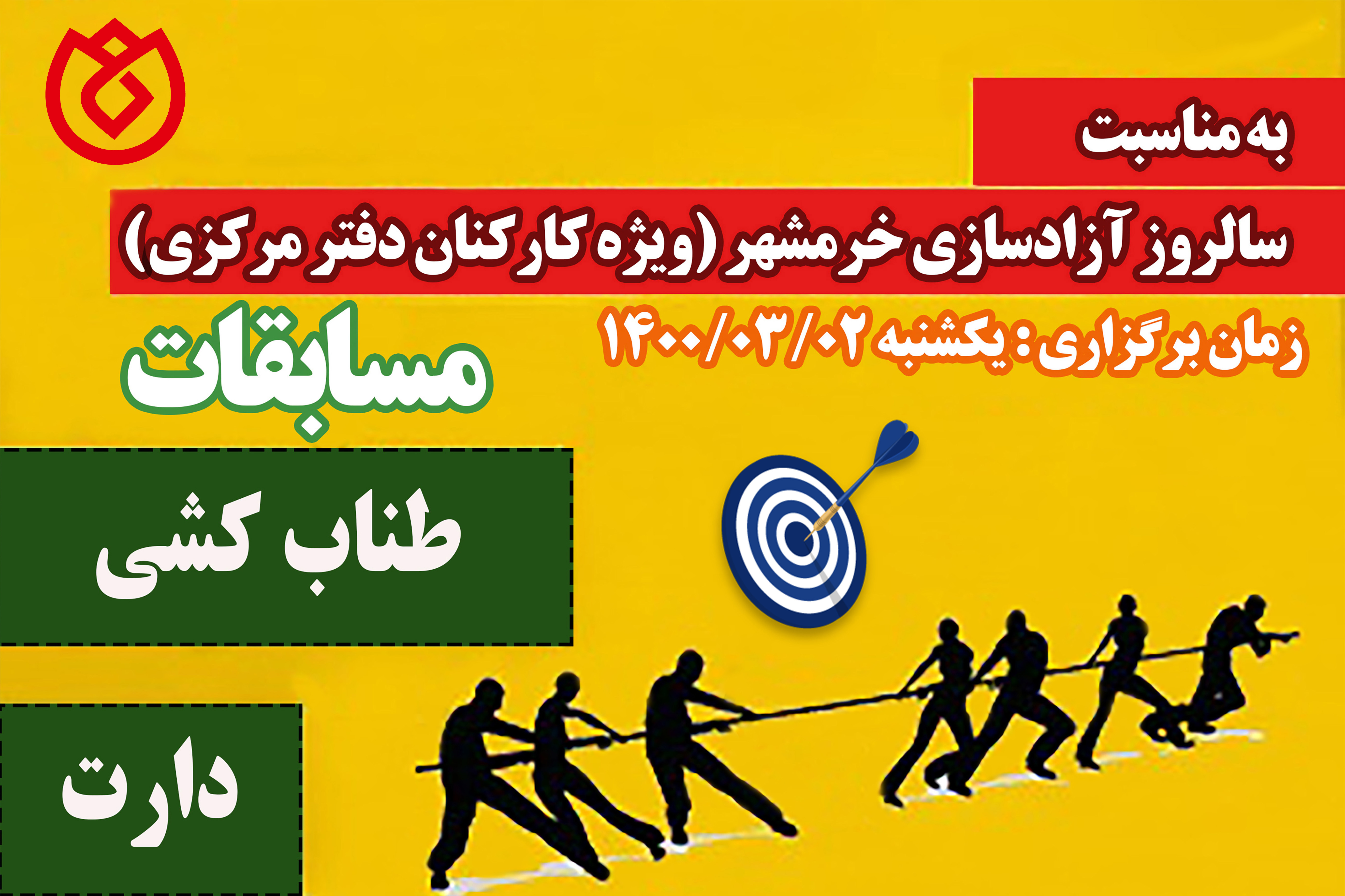 به گزارش روابط عمومی صندوق قرض الحسنه شاهد، مسابقات ورزشی کارکنان دفتر مرکزی به مناسبت سالروز آزادسازی خرمشهر و گرامیداشت روز مقاومت، ایثار و پیروزی در دو رشته دارت (بانوان و آقایان) و طناب کشی(آقایان) در ساختمان گاندی برگزار شد.