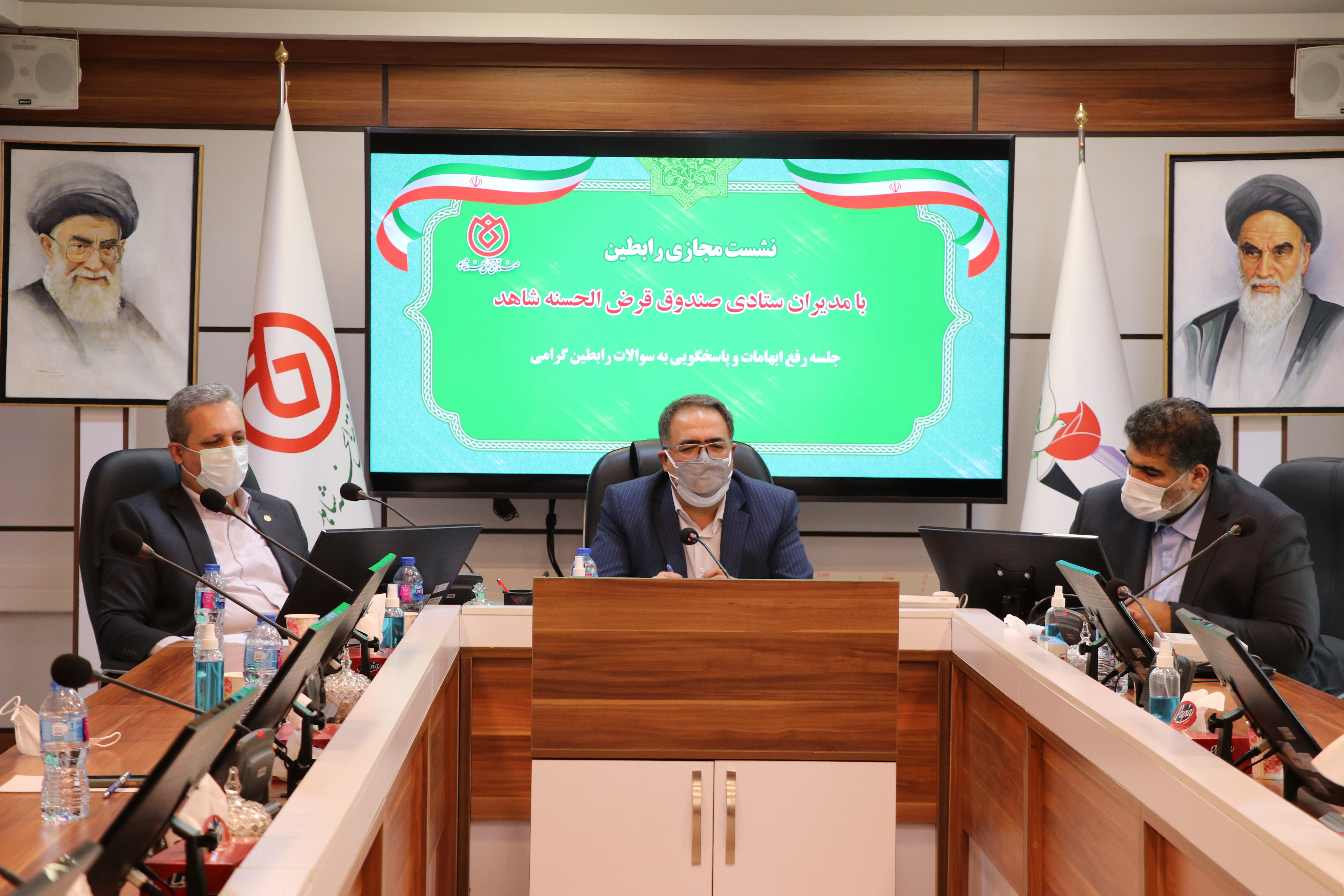 در ادامه دکتر اسلام کریمی مدیرعامل و عضو هیئت مدیره صندوق قرض الحسنه شاهد بصورت مجازی در نشست حضور یافته و پاسخگوی ابهامات و سوالات رابطین در خصوص موارد مختلف مربوط به صندوق بودند.