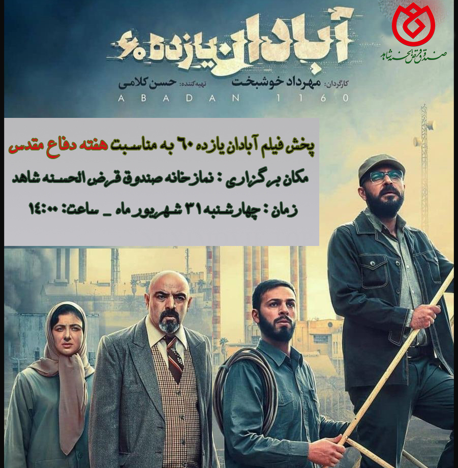 اولین روز از هفته دفاع مقدس فیلم سینمایی آبادان یازده 60 به کارگردانی مهرداد خوشبخت که در بخش سودای سیمرغ سی و هشتمین دوره جشنواره فیلم فجر حضور داشت و برنده سیمرغ بلورین جایزه ویژه قاسم سلیمانی جشنواره فیلم فجر گردید، به نمایش گذاشته شد.