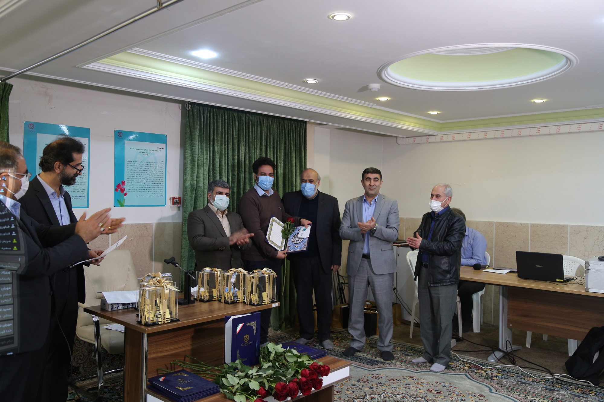 در پایان مراسم دکتر اسلام کریمی مدیرعامل صندوق قرض الحسنه شاهد با اهداء گل و تندیس از پژوهشگران برتر تجلیل به عمل آورد.