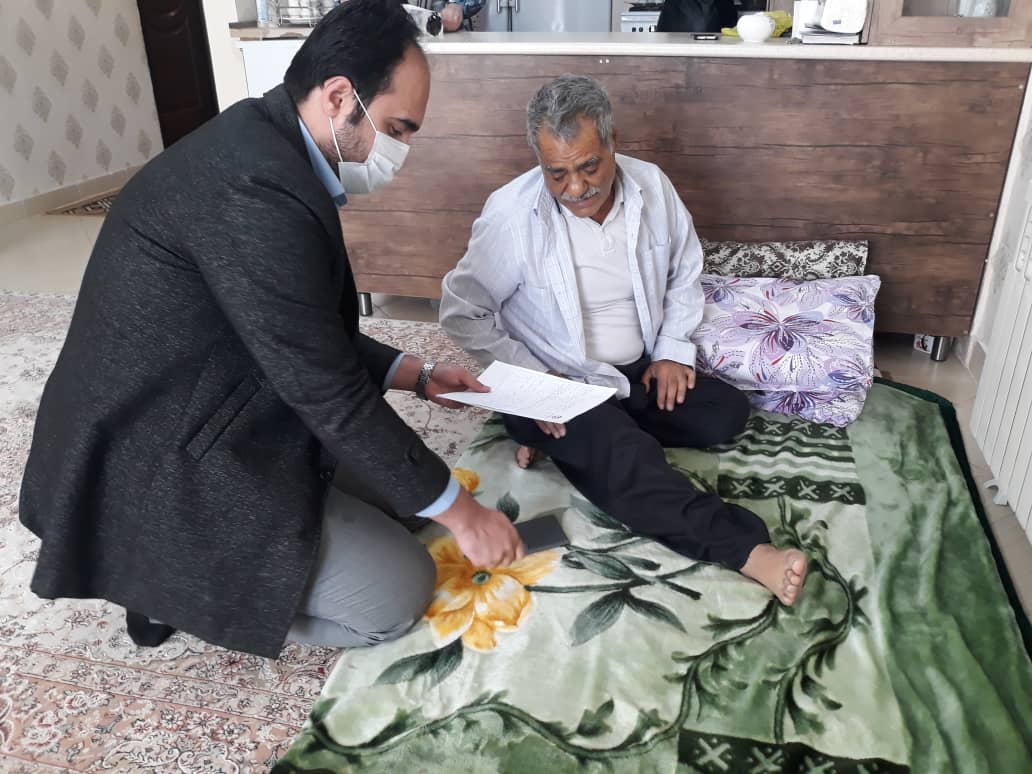 کارکنان منطقه آذربایجان غربی صندوق قرض الحسنه شاهد در قالب پیک خدمت با مراجعه به منزل این جانباز، ضمن عیادت، اقدامات لازم در خصوص دریافت درخواست تسهیلات ایشان را انجام دادند.