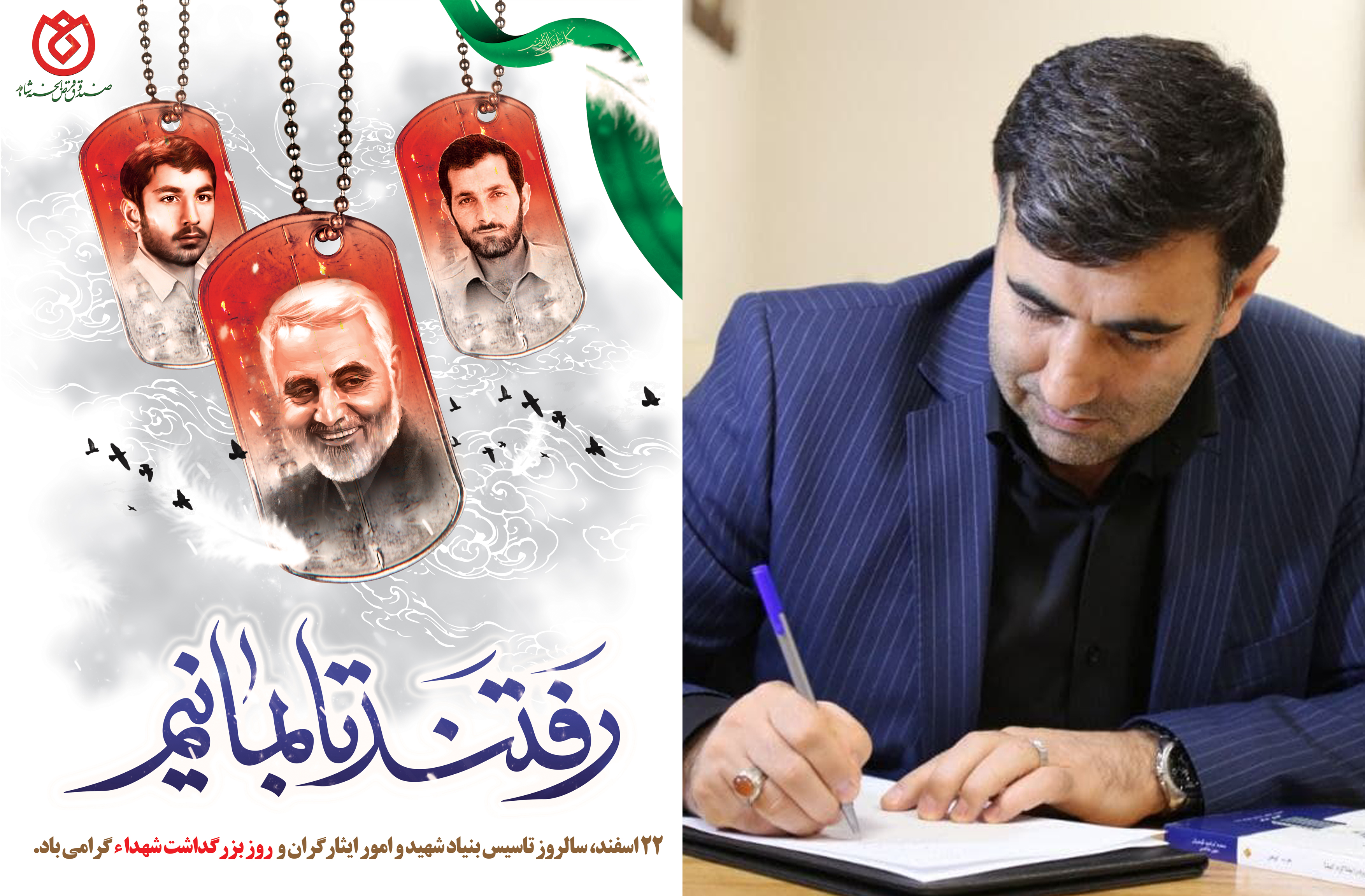 اینجانب ضمن پاسداشت فرمان تاریخی امام خمینی رحمت الله علیه در 22 اسفند 1358 ، سالروز تاسیس نهاد مقدس بنیاد شهید و امور ایثارگران و نامگذاری آن به عنوان روز بزرگداشت شهداء را محضر خانواده های معظم و معزز شهداء گرانقدر، مقام معظم رهبری حضرت امام خامنه ای(مدظله العالی)، دکتر سید امیرحسین قاضی زاده هاشمی معاون محترم رییس جمهور و ریاست عالی بنیاد شهید و امور ایثارگران، حجت الاسلام شکری نماینده محترم ولی فقیه و تمام ملت عزیز و شهید پرور ایران اسلامی تبریک و تهنیت عرض می نمایم و از خداوند متعال برای شهیدان مان علو درجات و برای بازماندگان این قهرمانان ملی، اسوه های صبر و استقامت، عزت، دوام و بقاء آرزومندم.