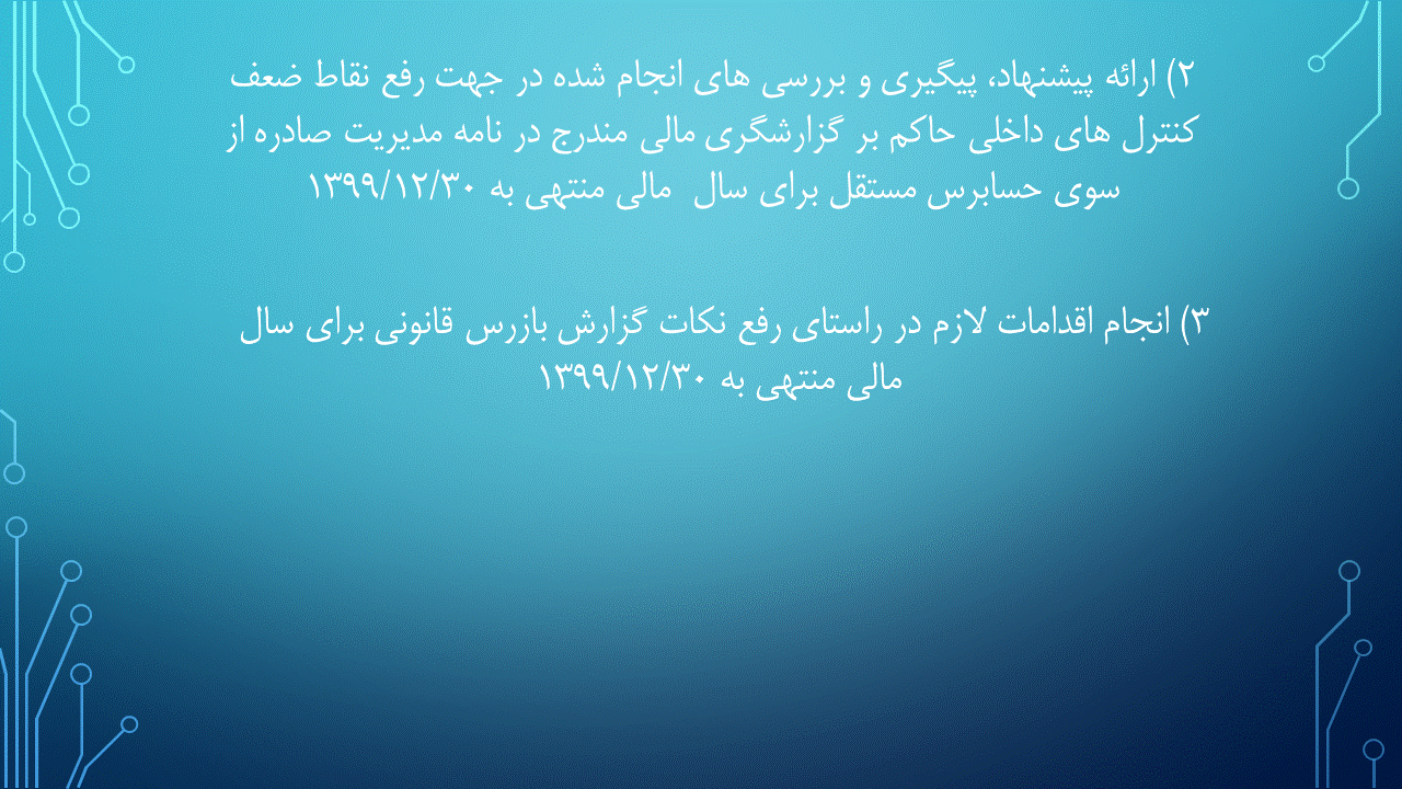 گزارش عملکرد مدیریت حسابرسی داخلی برای سال مالی منتهی به 29اسفند ماه1400