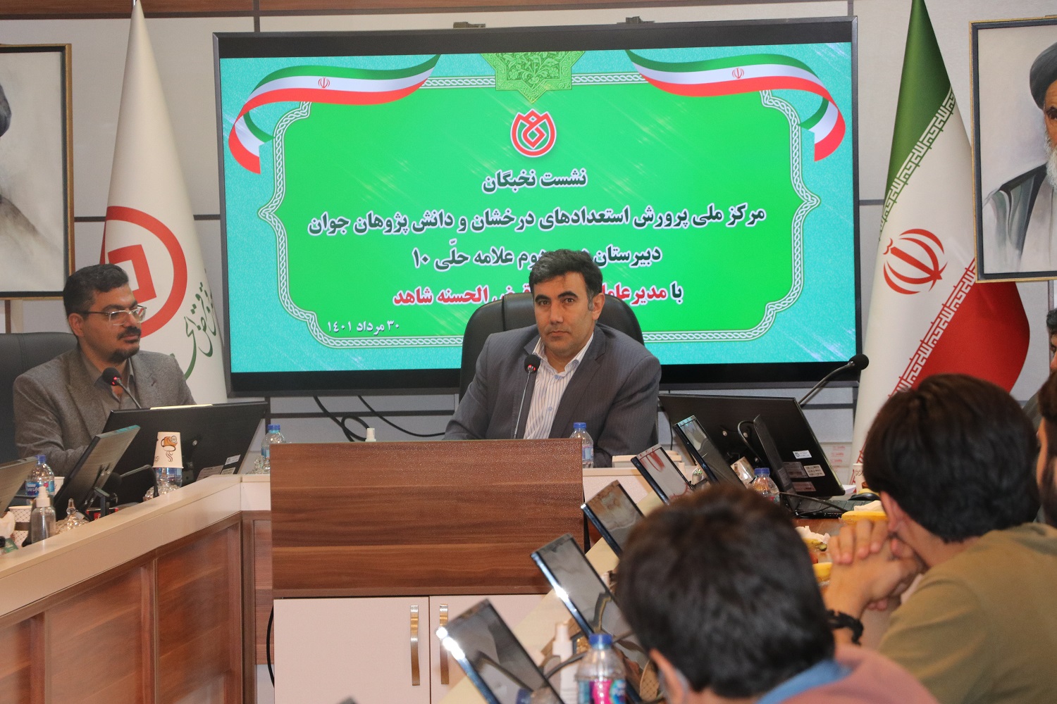 در ادامه نشست نخبگان مرکز ملی پرورش استعدادهای درخشان و دانش پژوهان جوان دبیرستان دوره دوم علامه حلّی 10 به بیان سوالات، نظرات و پیشنهادات خود پرداختند و دکتر اسلام کریمی در فضایی کاملاً صمیمانه پاسخگوی این گروه از آینده سازان ایران اسلامی بود.