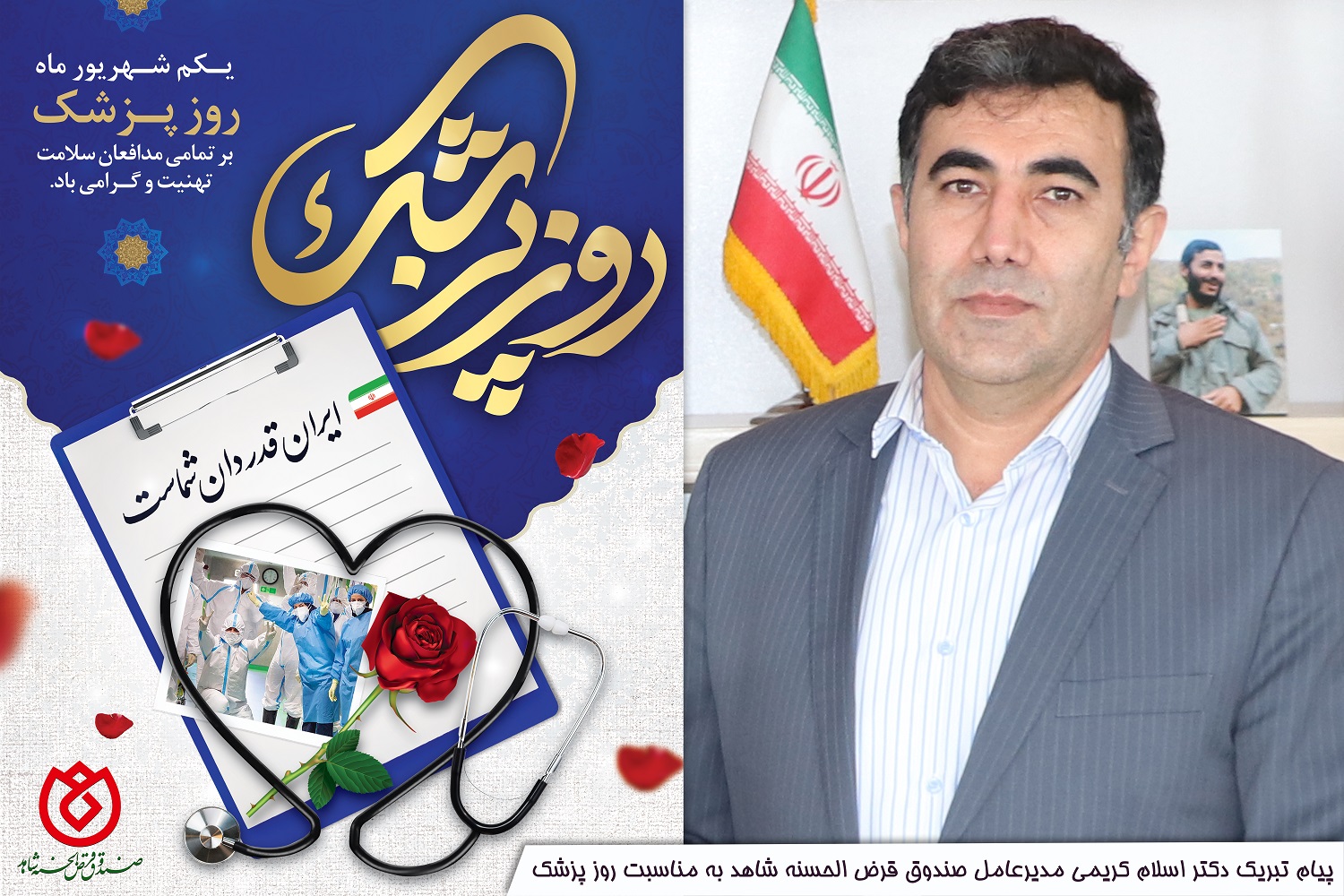 اینجانب ضمن ادای احترام به پزشکان شهید مدافع سلامت، فرا رسیدن روز پزشک را به یکایک اعضای جامعه پزشکی به ویژه پزشکان شاغل در مجموعه های بنیاد شهید و امور ایثارگران اعم از معاونت بهداشت، بیمارستان ها و همچنین آسایشگاه های ایثارگران صمیمانه تبریک عرض می نمایم.