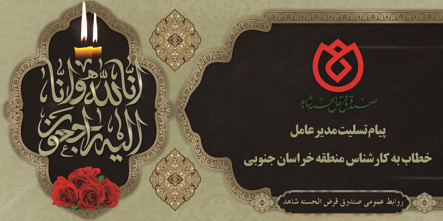 همکار گرامی جناب آقای حمید اسلامی کارشناس محترم منطقه خراسان جنوبی صندوق قرض الحسنه شاهد، بدینوسیله درگذشت مادر گرانقدرتان را به شما و خانواده محترمتان تسلیت عرض نموده، برای آن مرحومه رحمت و مغفرت و برای شما و سایر بازماندگان صبر جمیل را از درگاه خداوند متعال مسئلت می نمایم.