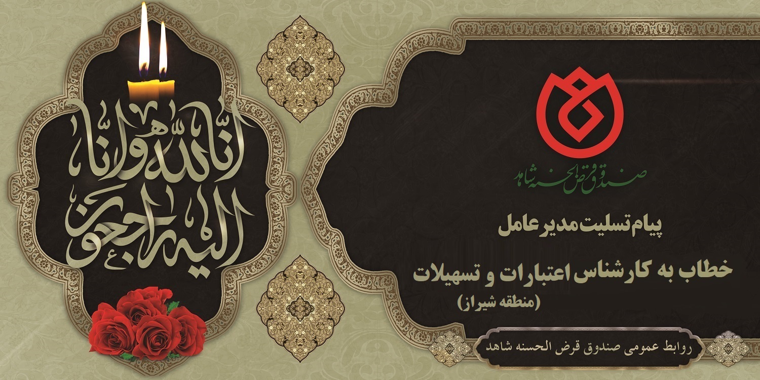 همکار گرامی جناب آقای حمیدرضا فرهادی نیا کارشناس محترم اعتبارات و تسهیلات منطقه شیراز صندوق قرض الحسنه شاهد، بدینوسیله درگذشت مادر گرانقدرتان را به شما و خانواده محترمتان تسلیت عرض نموده، برای آن مرحومه رحمت و مغفرت و برای شما و سایر بازماندگان صبر جمیل را از درگاه خداوند متعال مسئلت می نمایم.