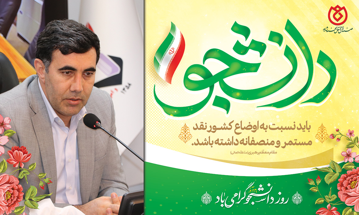 به نمایندگی از کارکنان و خانواده معظم و معزز شاهد و ایثارگر عضو و به عنوان یک استاد دانشگاه ، فرا رسیدن روز دانشجو، روز تأکید بر اهمیت علم آموزی و لزوم حقیقت جویی، روز تأکید بر لزوم تقویت ایمان و اهمیت افزایش بصیرت سیاسی و معرفت دینی را به تمامی دانشجویان مؤمن و پرتلاش ایران اسلامی به ویژه دانشجویان خانواده بزرگ صندوق قر الحسنه شاهد اعم از همکاران و خانواده های آنها و همچنین خانواده های معظم و معزز شاهد و ایثارگر عضو تبریک عرض می نمایم.