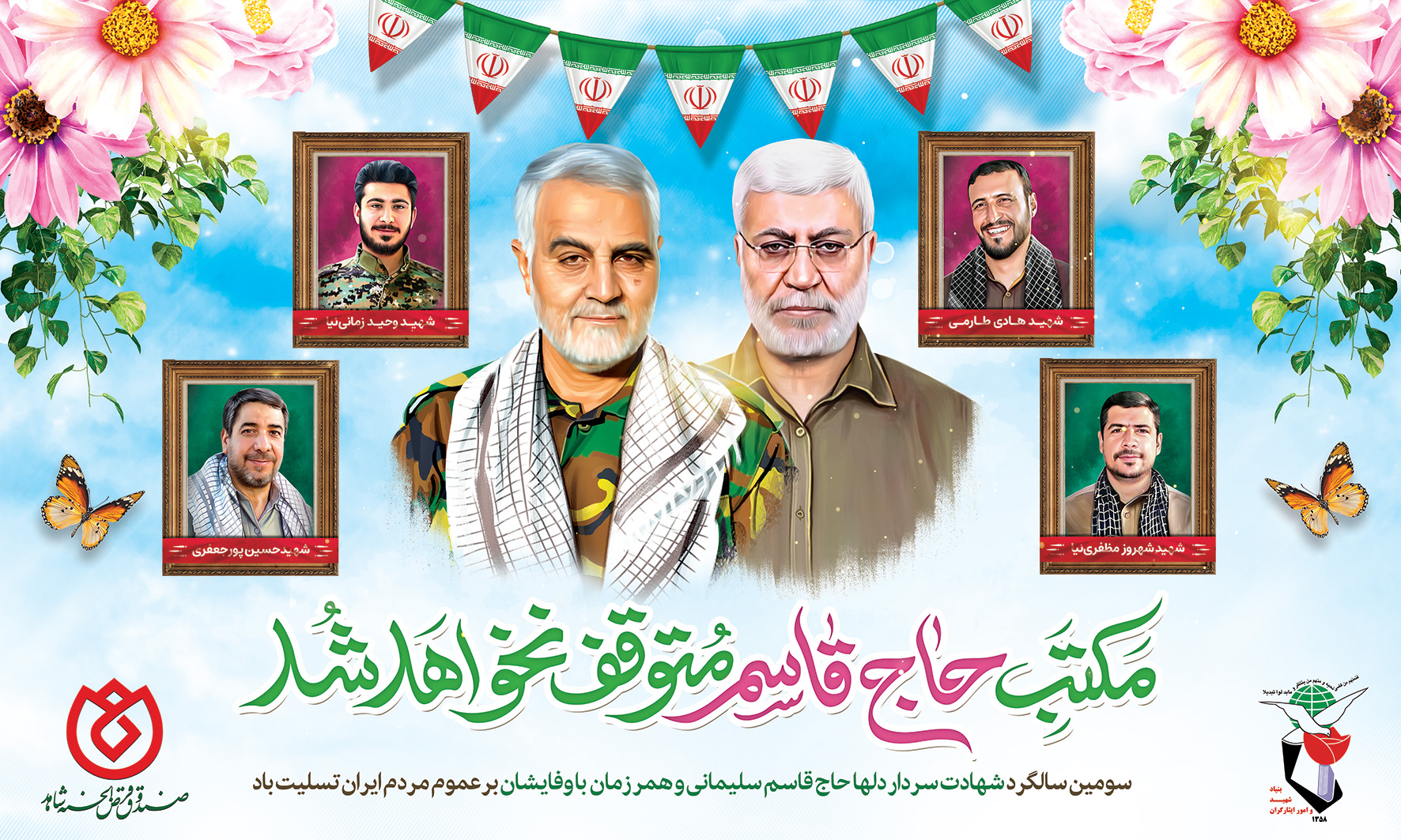 لازم می دانم به نمایندگی از خانواده های معظم و معزز شاهد و ایثارگر عضو و کارکنان صندوق قرض الحسنه شاهد، سومین سالگرد شهادت جان فدای ملت ایران شهید سپهبد حاج قاسم سلیمانی و یاران باوفایش (شهدای مقاومت) را محضر حضرت ولی عصر(عج)، مقام معظم رهبری حضرت آیت الله العظمی خامنه ای (مدظله العالی) و خانواده های عزیز این شهیدان تسلیت و تعزیت عرض نمایم.