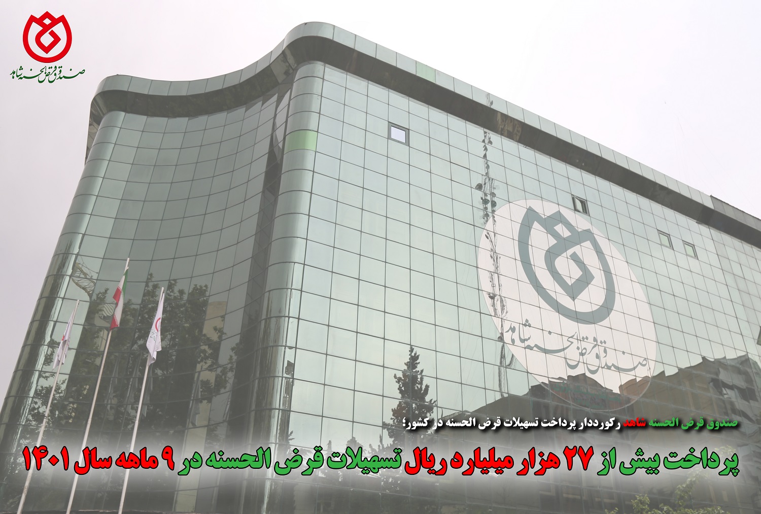 صندوق قرض الحسنه شاهد در سال 1400 کمتر از بیست و شش هزار میلیارد تسهیلات پرداخته کرده بود که همین نکته نشان دهنده تحقق این عملکرد در 9 ماهه سال 1401 است.