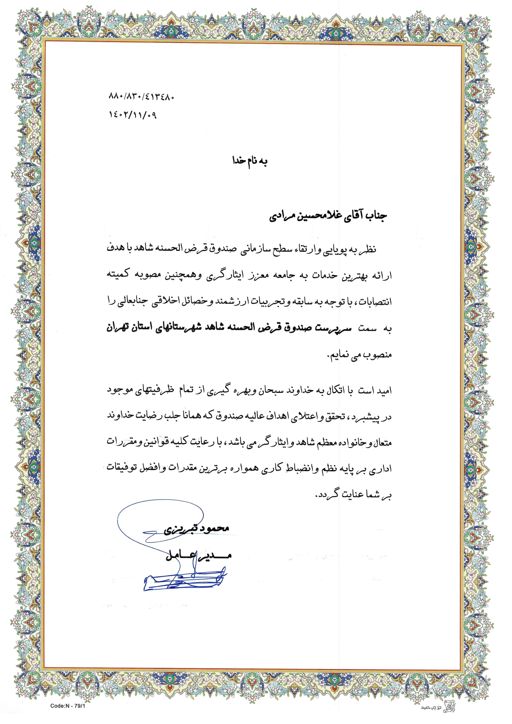 در ادامه احکام صادر شده و گزارش تصویری مراسم معارفه قابل مشاهده می باشد: