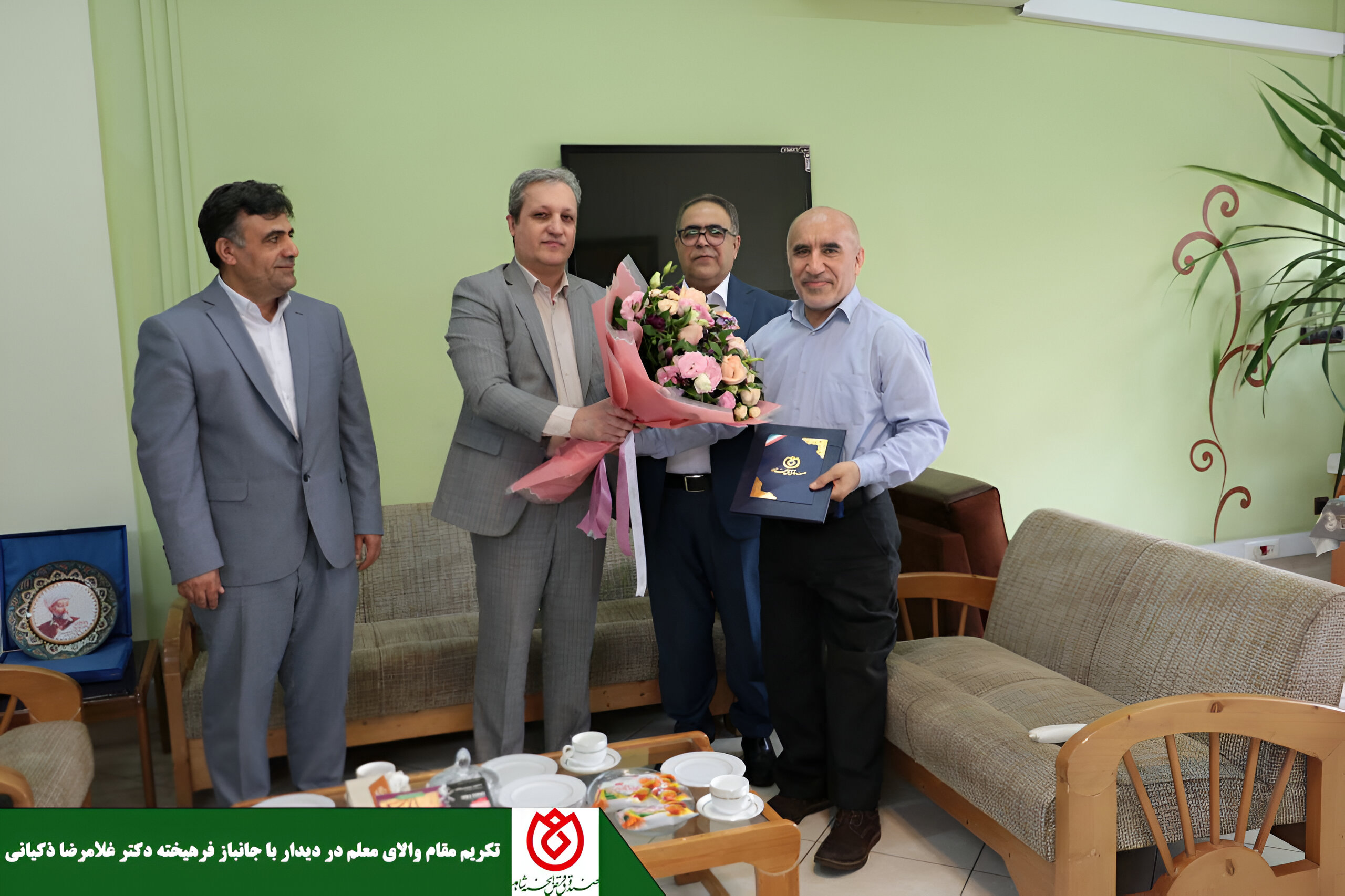 در این دیدار، که با حضور آقای مرادی، مدیر روابط عمومی، آقای دکتر عباسی، مدیر اعتبارات و تسهیلات و آقای دکتر علی بخشی از اساتید و عضو هئیت علمی دانشگاه علامه طباطبایی به نمایندگی از دکتر کریمی مدیرعامل محترم صندوق برگزار شد، با اهدای لوح تقدیر، از سالها مجاهدت علمی، فرهنگی و ایثارگرانه این استاد بزرگوار، تجلیل بهعمل آمد.
